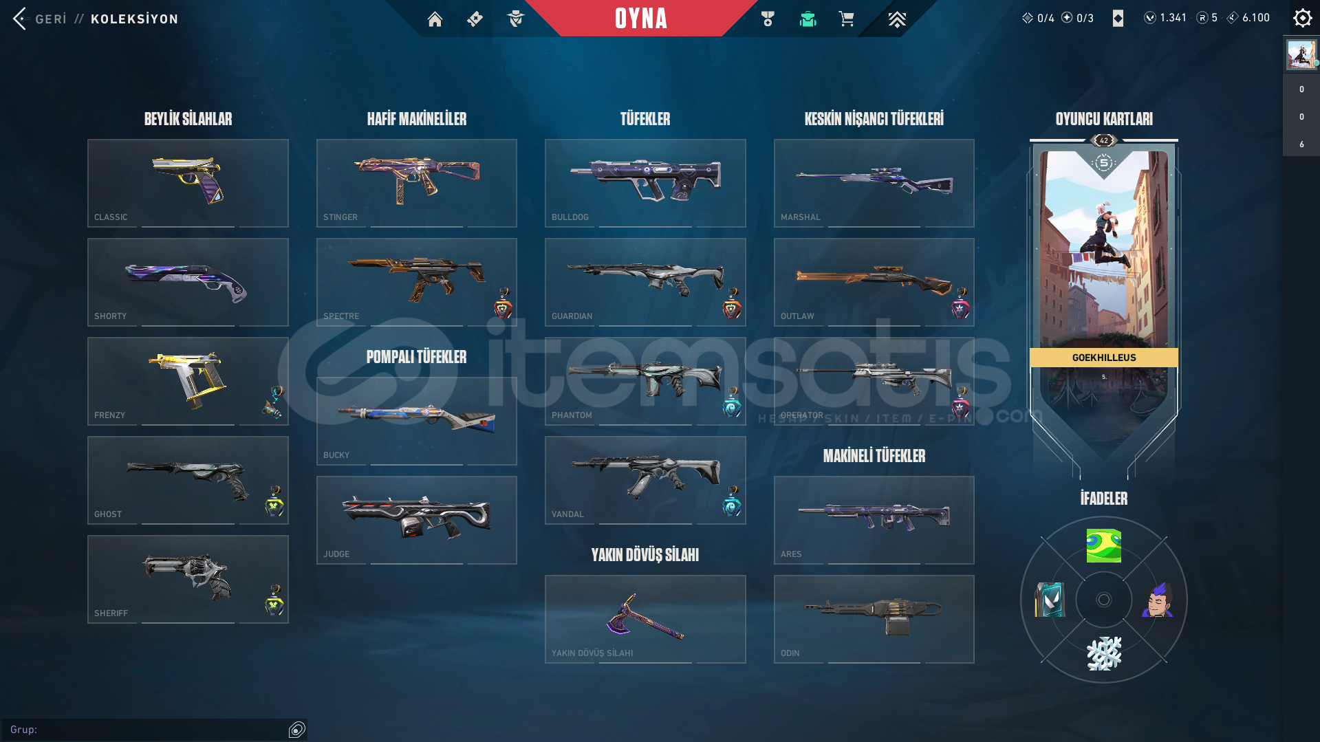 -- HESAP 42 LEVELDİR, RANKSIZDIR VE 1.341 VP BULUNMAKTADIR.