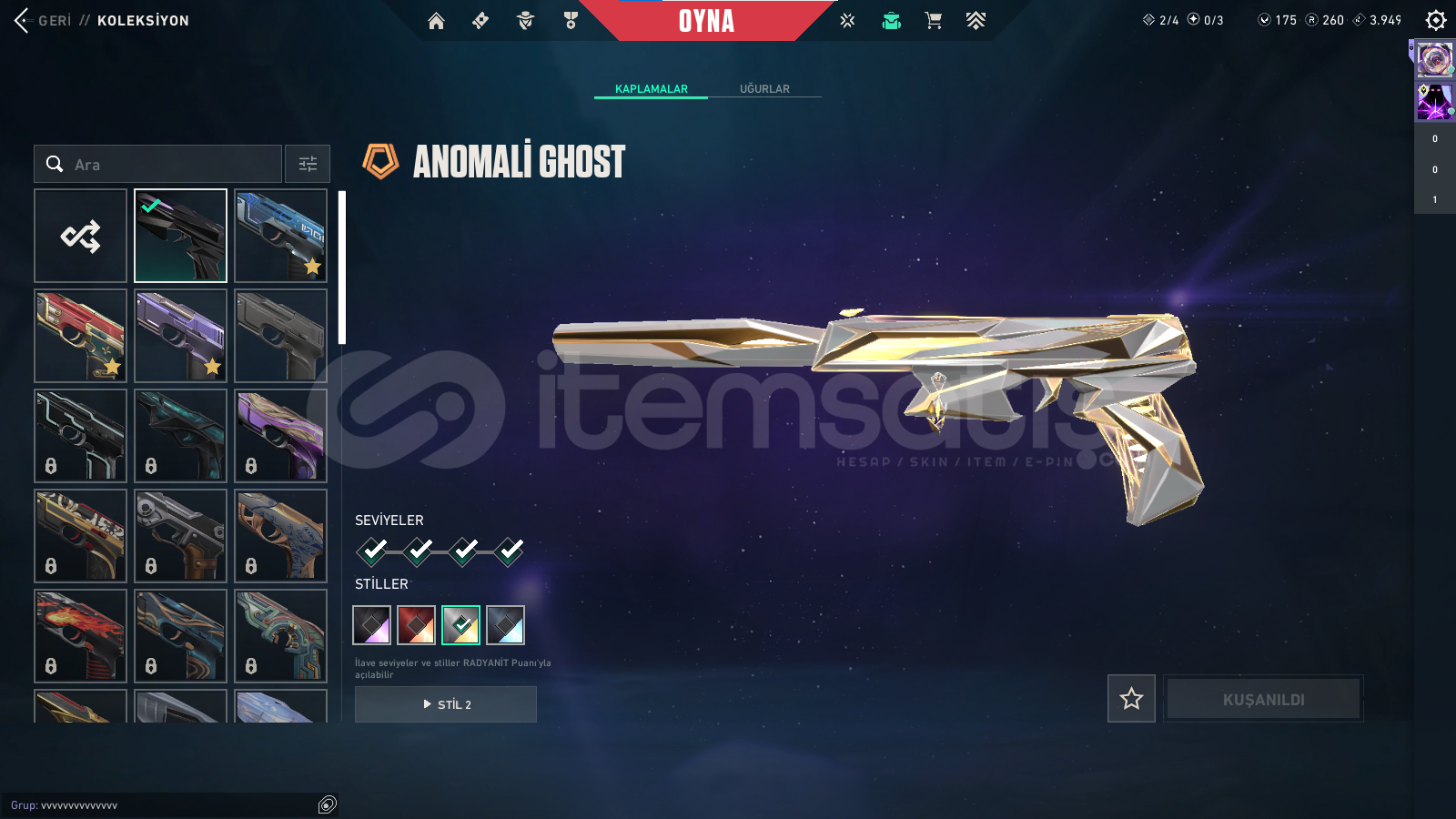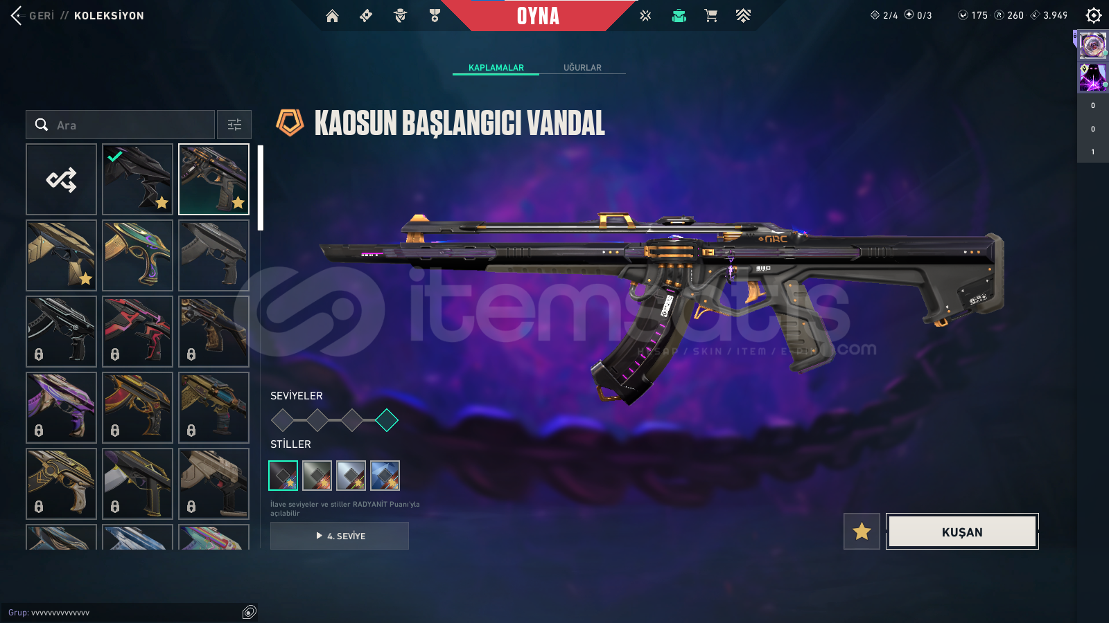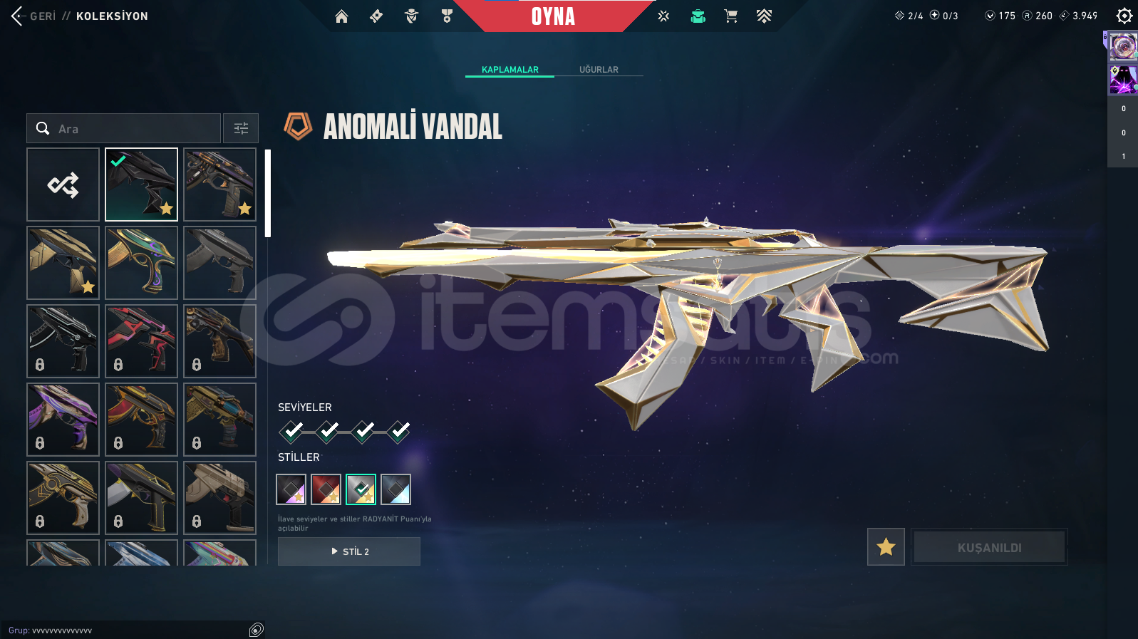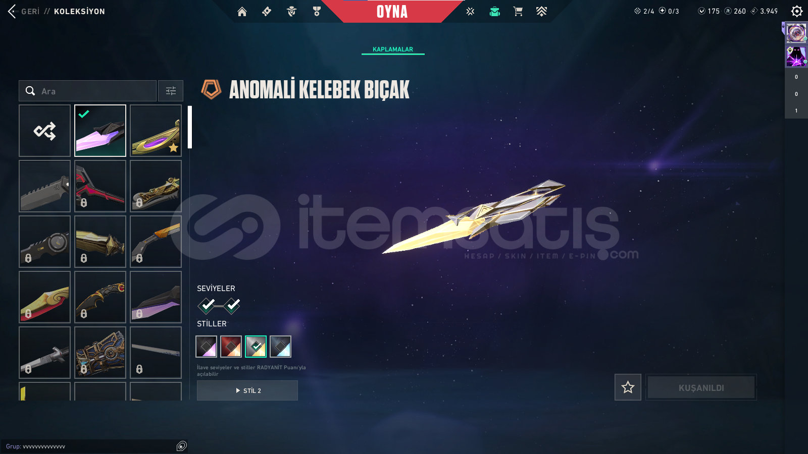 -214 seviye hesap olup gayet bol skinli bir hesaptır