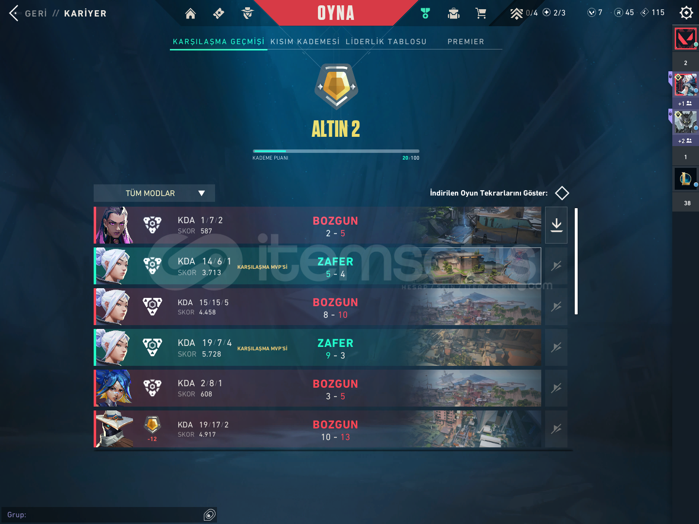 HESAPTA 2 SKİN VARDIR SEVİYESİ 20 ÜSTÜNDEDİR.RANK GOLD2 SUNUCU TR