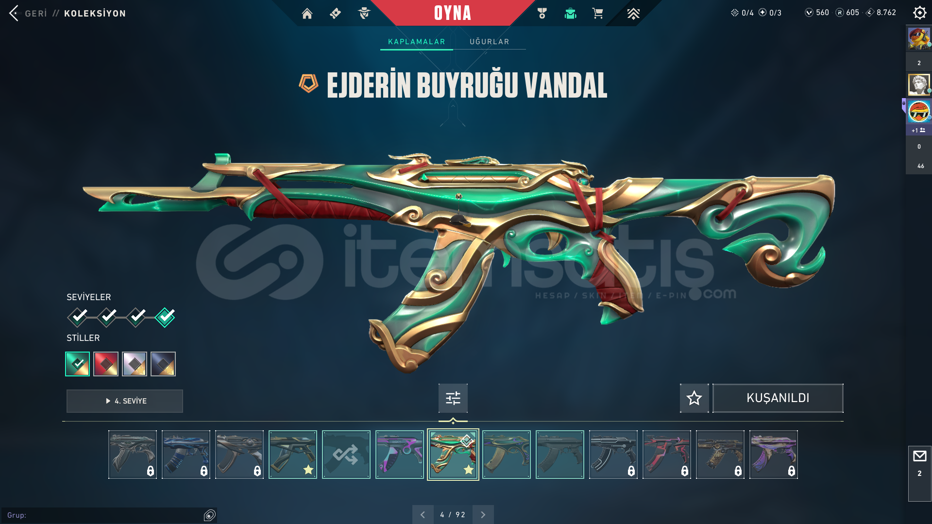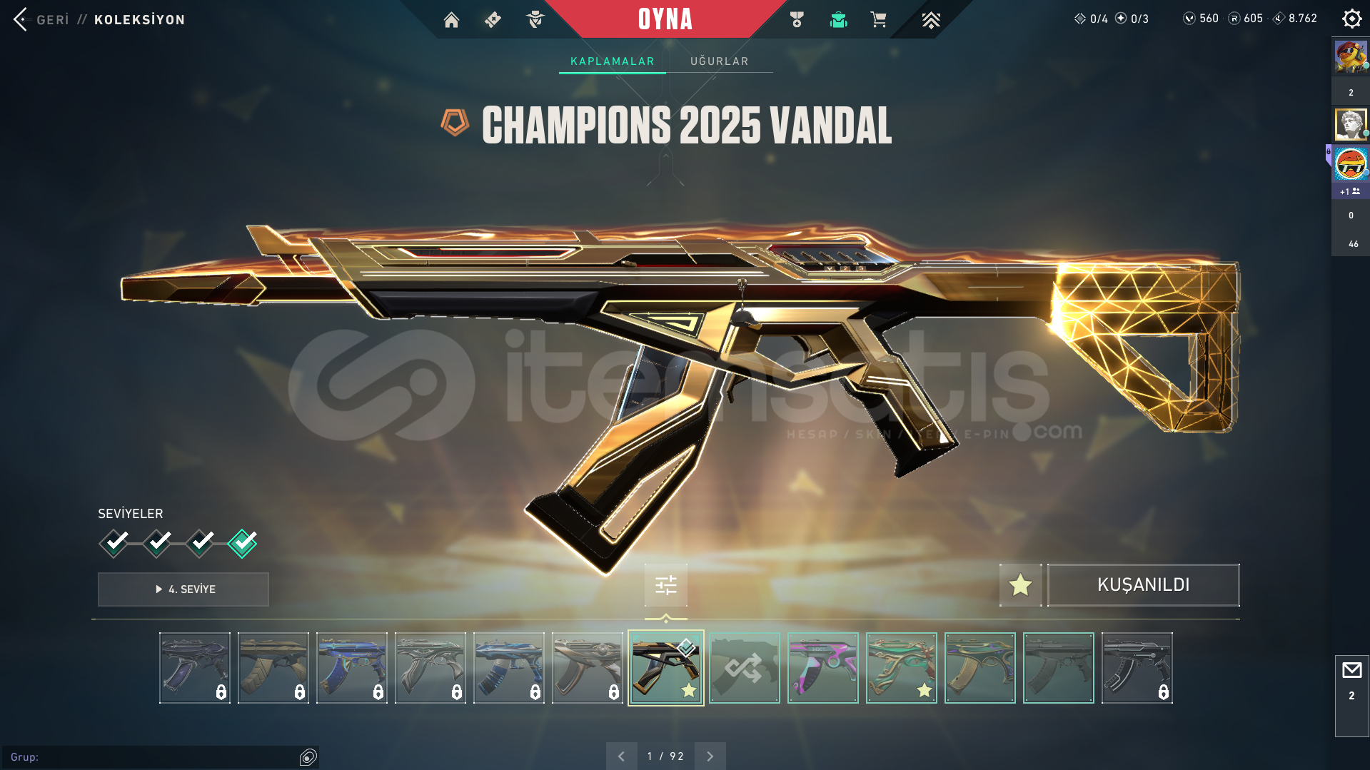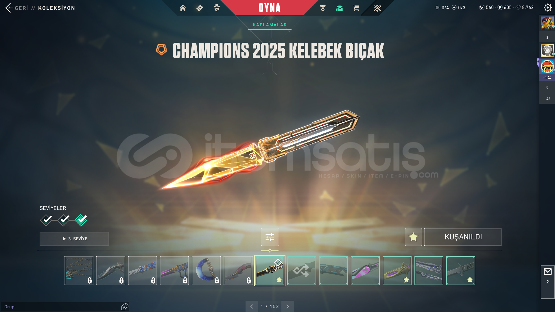 Merhaba,Hesap benim ana hesabımdır bir sorun çıkmayacaktır.Uzun zamandır oynıyorum.Belirli sebeblerden dolayı satıyorum.pazarlık payı vardır hesaptaki skinler;-Ejderin buyruğu vandal-Champions 2025 vandal-Seri tetik vandal-Uzaylı avcısı bıçak-champions 2025 kelebek-3 battlepass vs