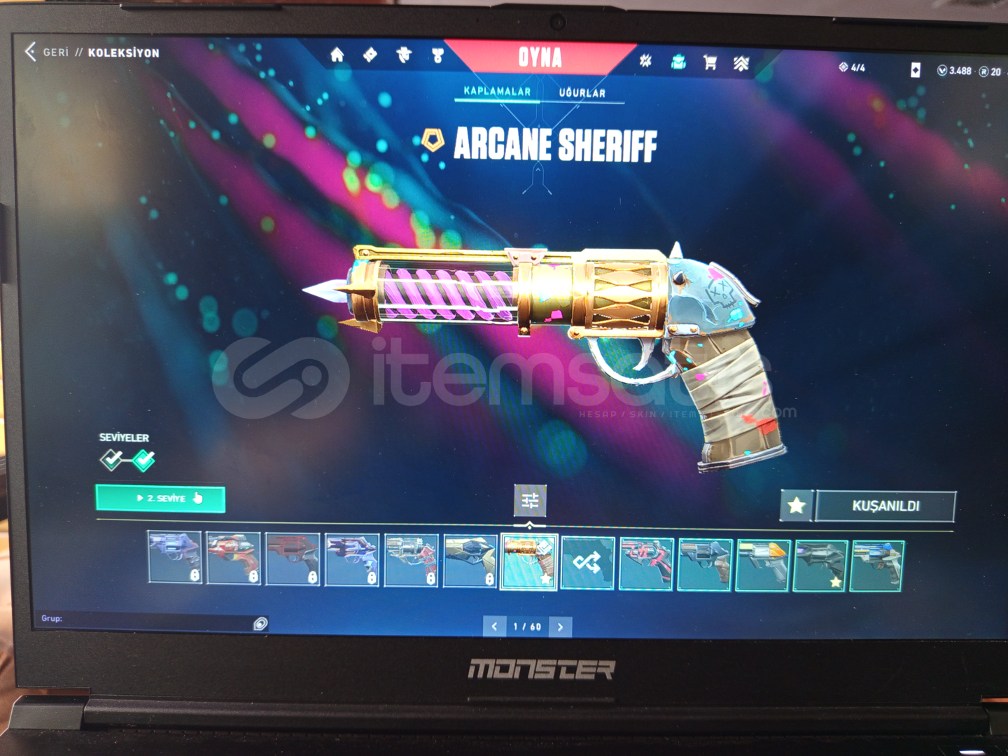 Nadir olanlarArcane sherifArcane VANDALArcane eldivenChampions 2021 fullChampions 2022 fullChampions 2023 fullChampions 2024 fullChampions 2025 fullToplam 120 skinli silah26 bıçak skini21 VANDAL akını19 phantom akını