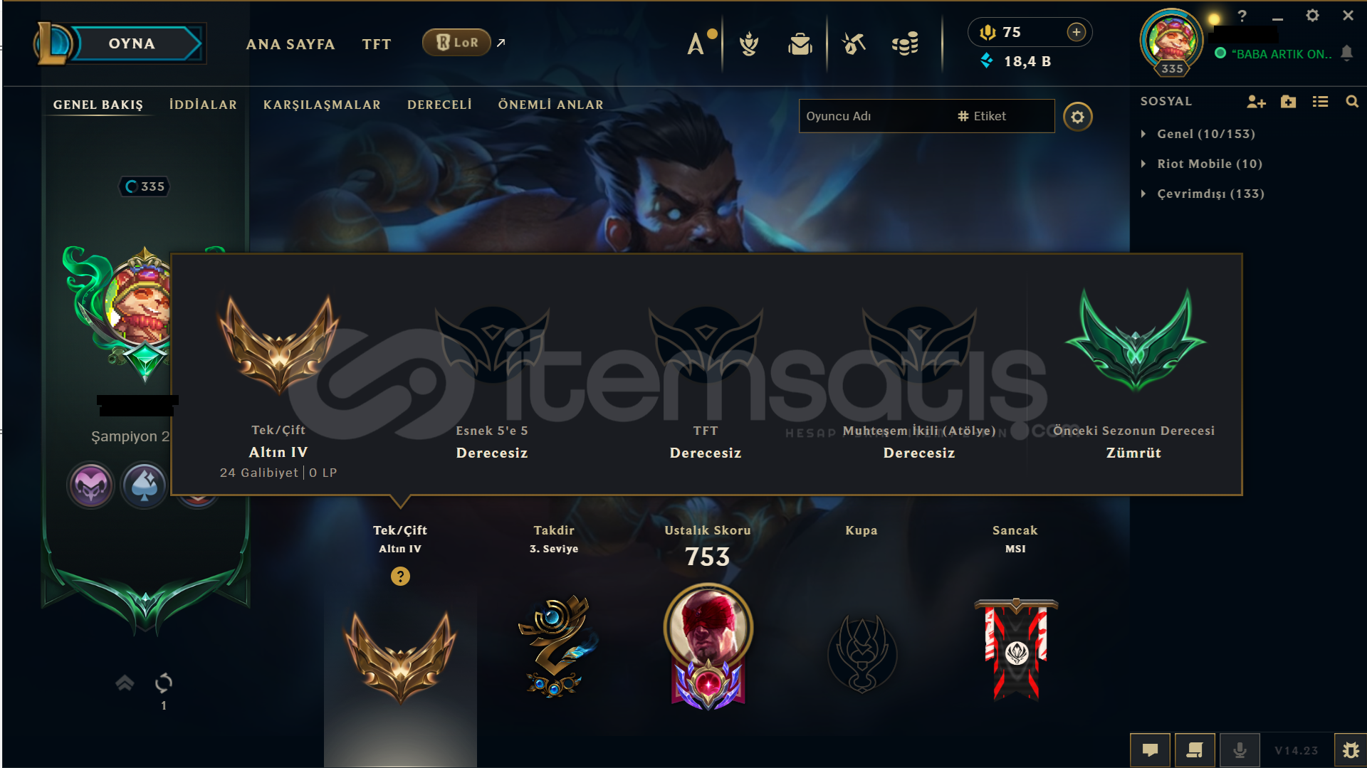 Son 3 sezon rankları: 2023 sezon 2 emerald 1 67 lp - 2024 sezon 1 diamond 3 63 lp - 2024 sezon 2 emerald 1 75 lp