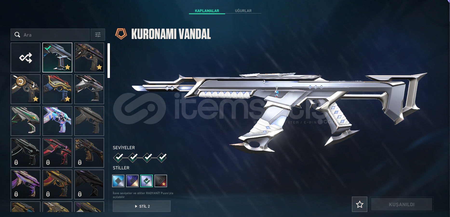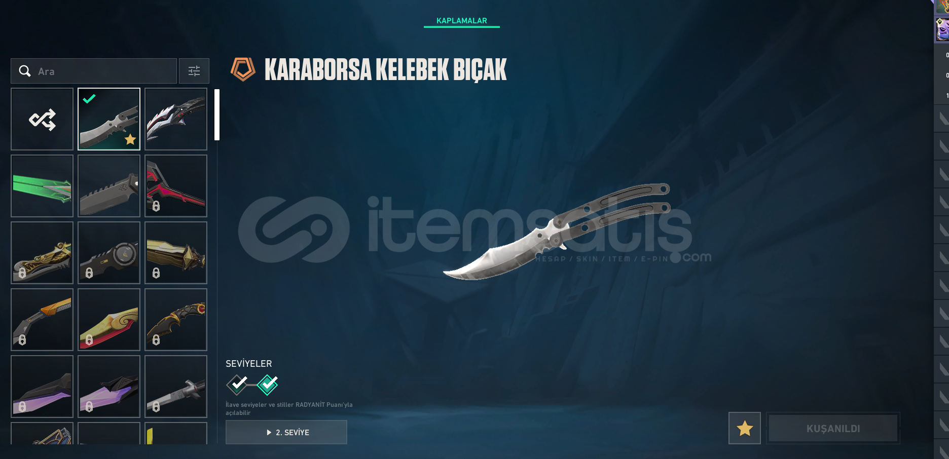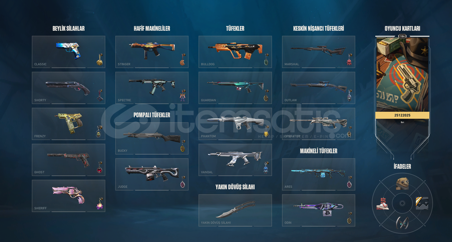 + Ayıcıklı Battle passÖzel Harekat GhostSır Çiçeği SheriffYağmacı SpectreAsil Guardianİyon PhantomKuronomi / Kaos / Köken / Oni VandalKara borsa KelebekKuronomi MarshallRgx OutlawYitik OperatörGaia Ares----FİYATTA PAZARLIK YAPILIR----