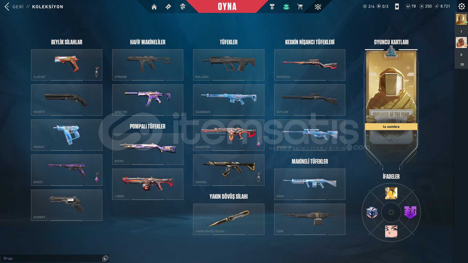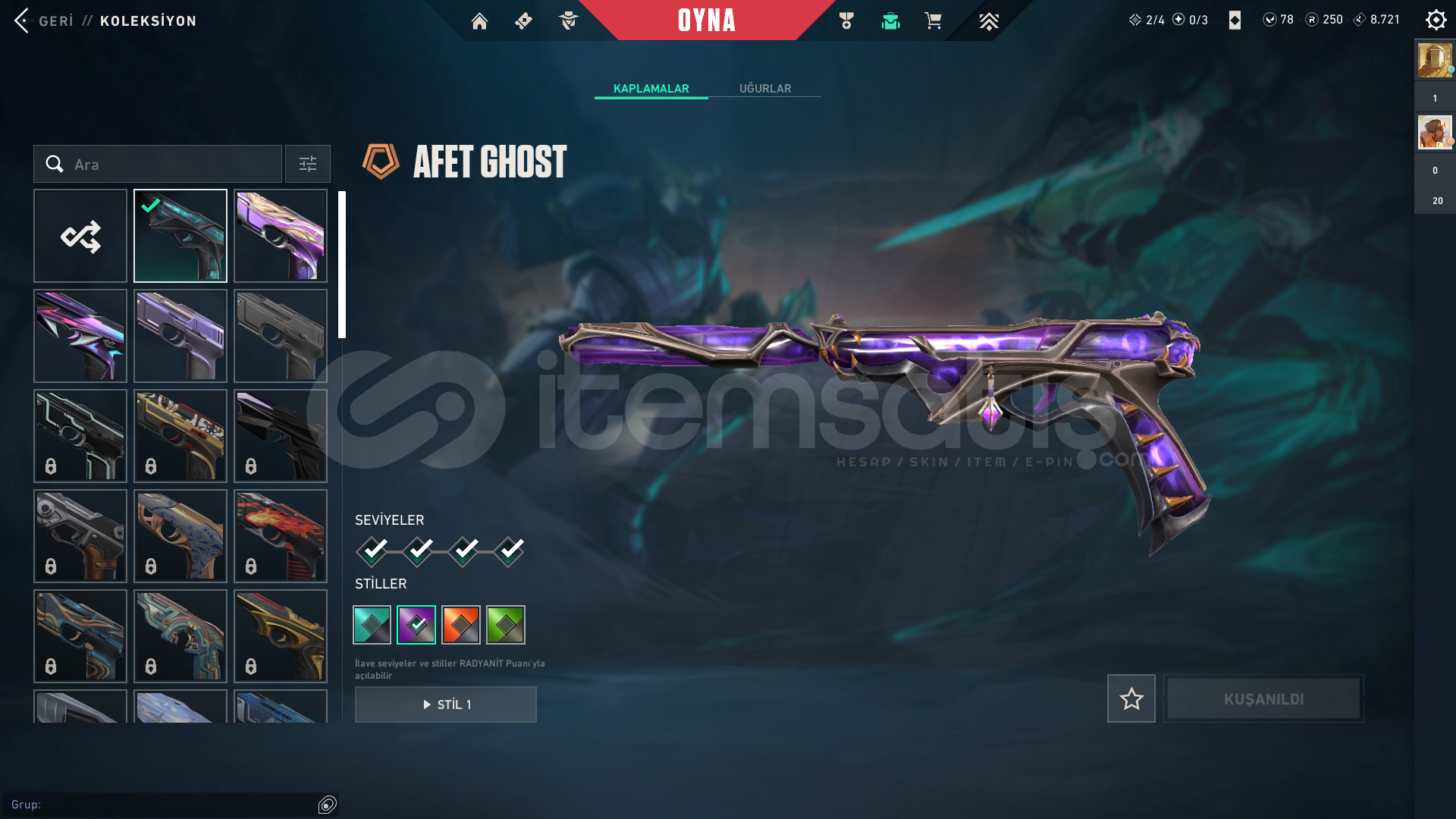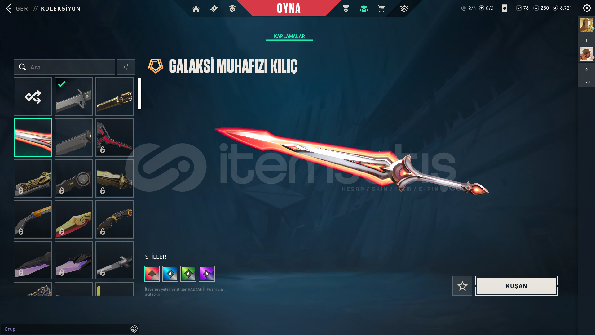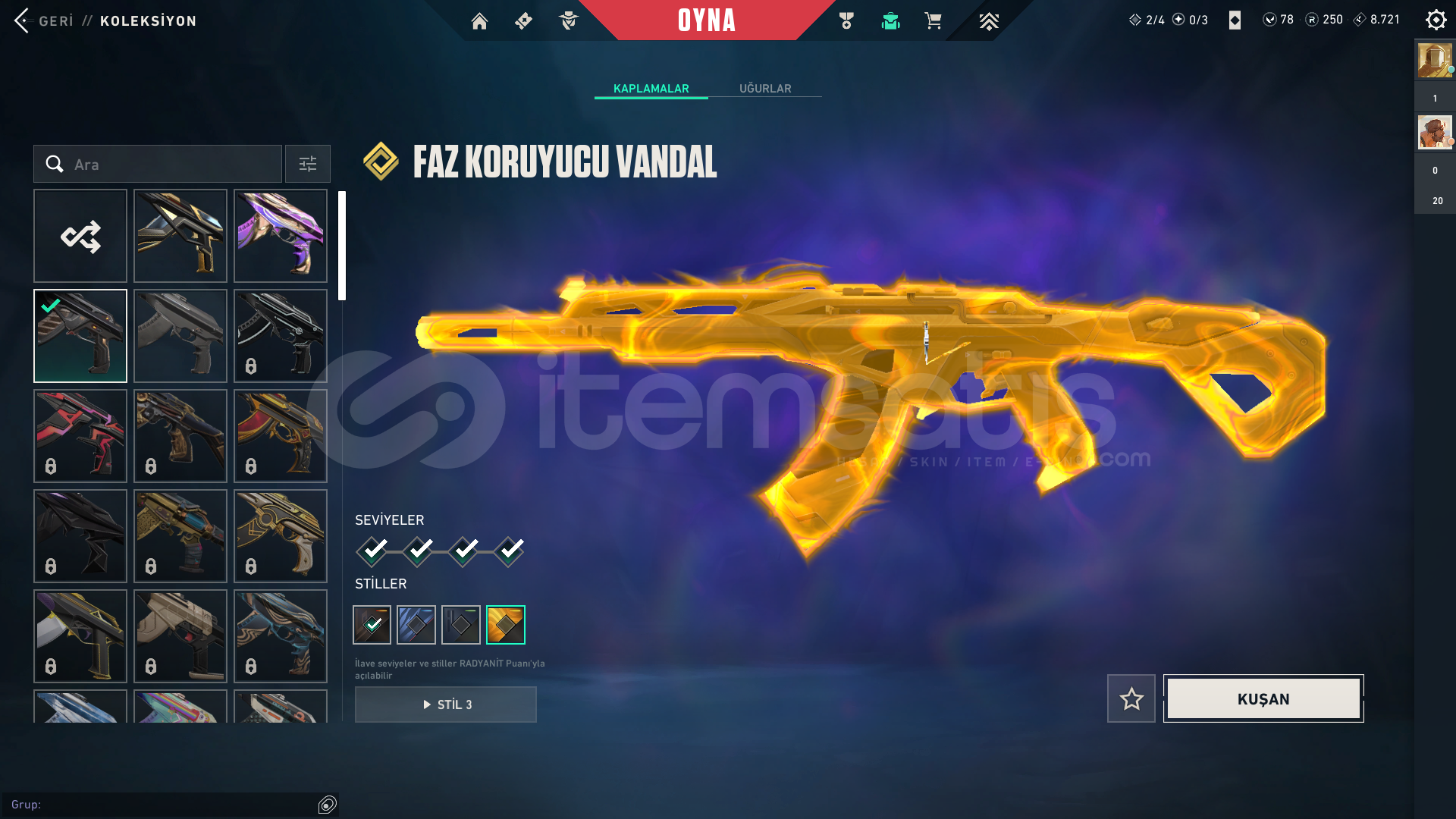 CHAMPİONS 2025 SETİ MEVCUTTURFAZ KORUYUCU VANDAL CHAMPİONS 2025 VANDAL CHAMPİONS 2025 KELEBEKUZAZYLI AVCISI BIÇAKAFET GHOST1 TANE BP BULUNAMAKTASİLAHLARIN HEPSİ FULL SEVİYEDİRPEAK PLAT 1 MAİN RANK GOLD 1