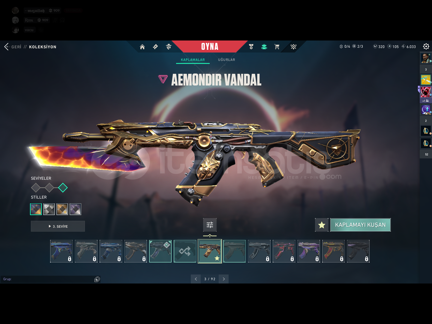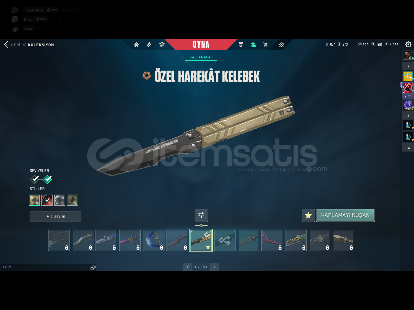 Hesapda bulunan skinler;