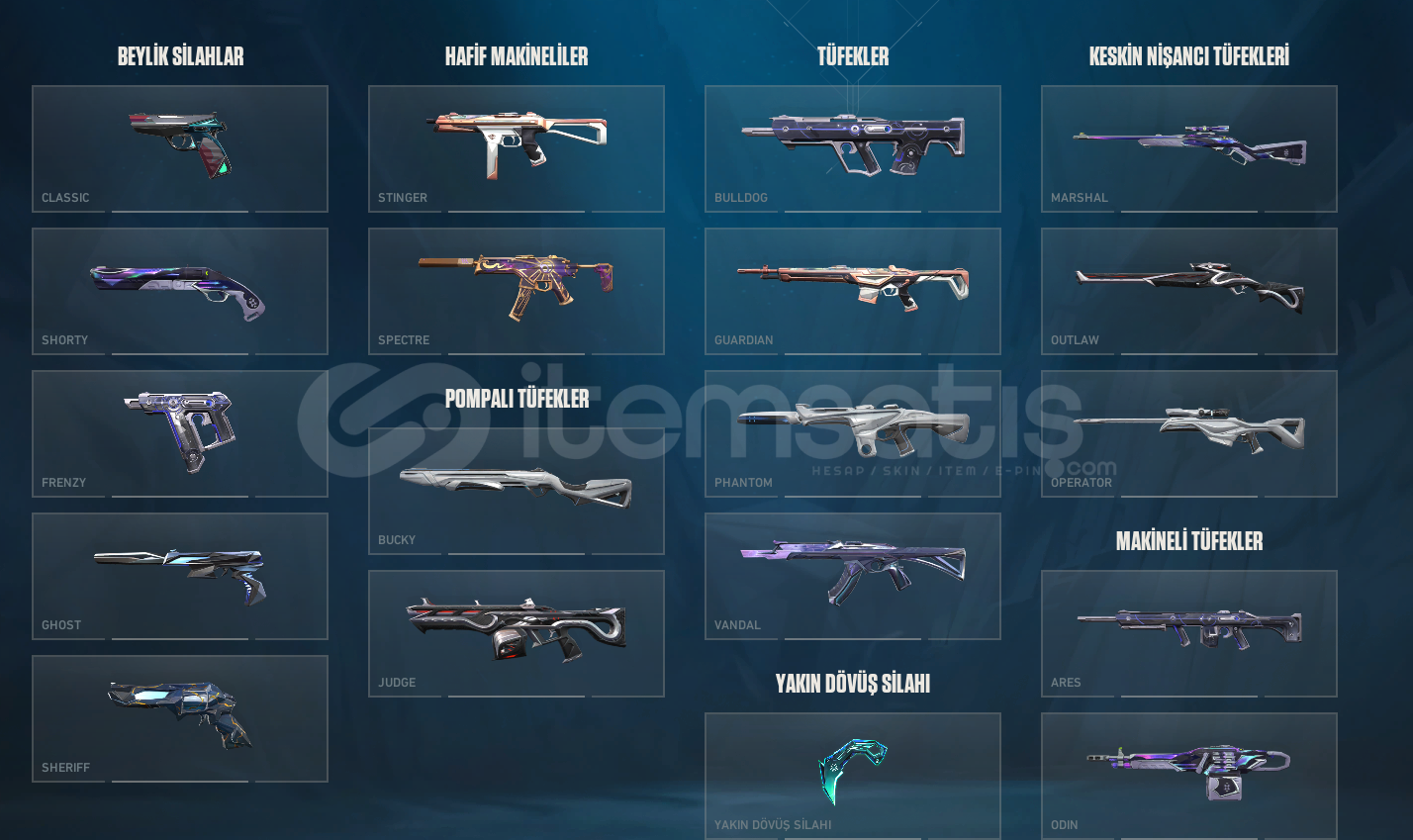 Hesabın içerisinde bulunan skinler :