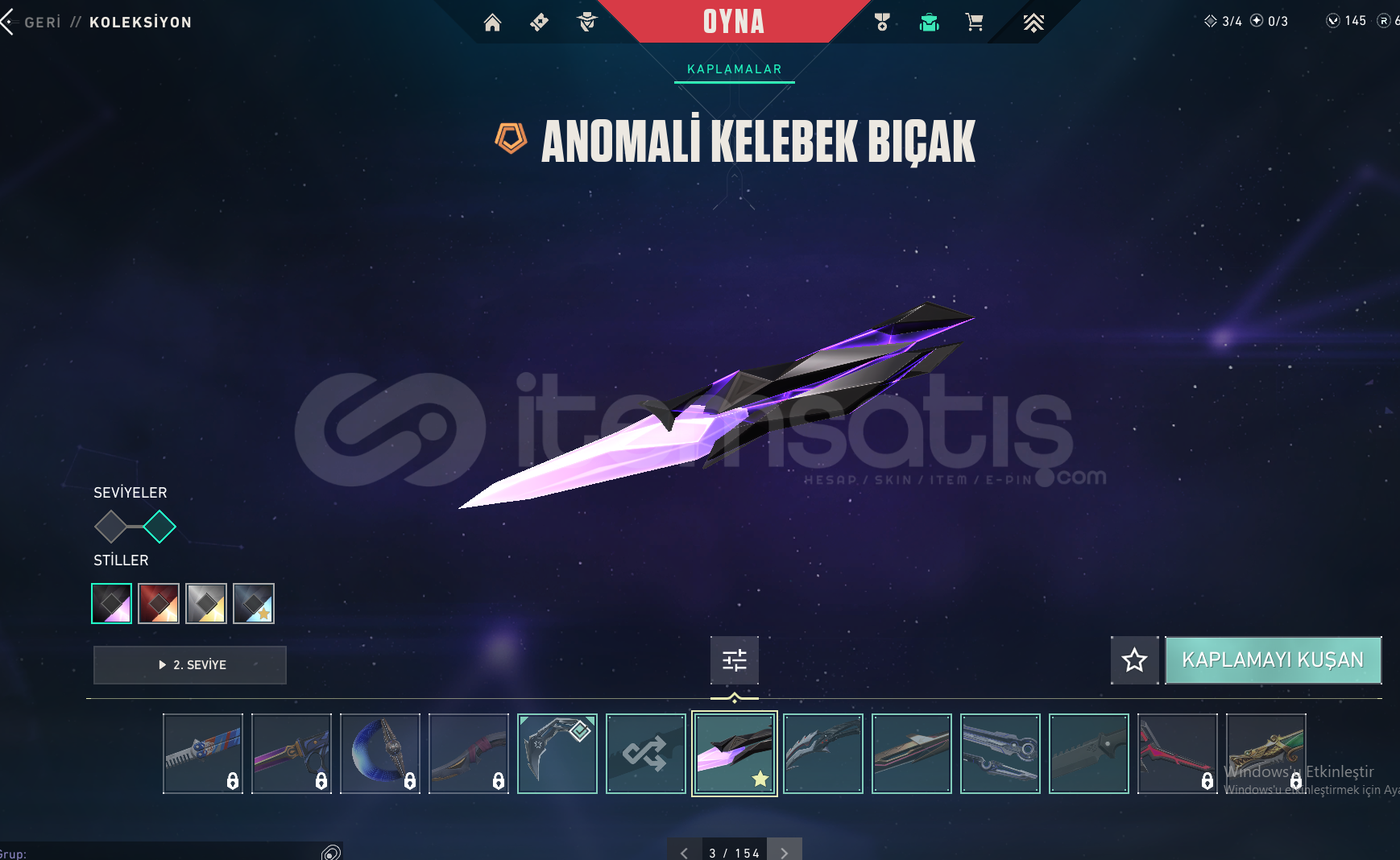 Ayrıca hesabımda 2 adette bp skinleri mevcuttur. 145 vp 65 radyanit bulunmaktadır. 8 bin tl ödeme geçmişi vardır. 4Skinler renk olarak vs birbirine uyuyor buna dikkat ederek dizdim alıcısına şimdiden hayırlı olsun.