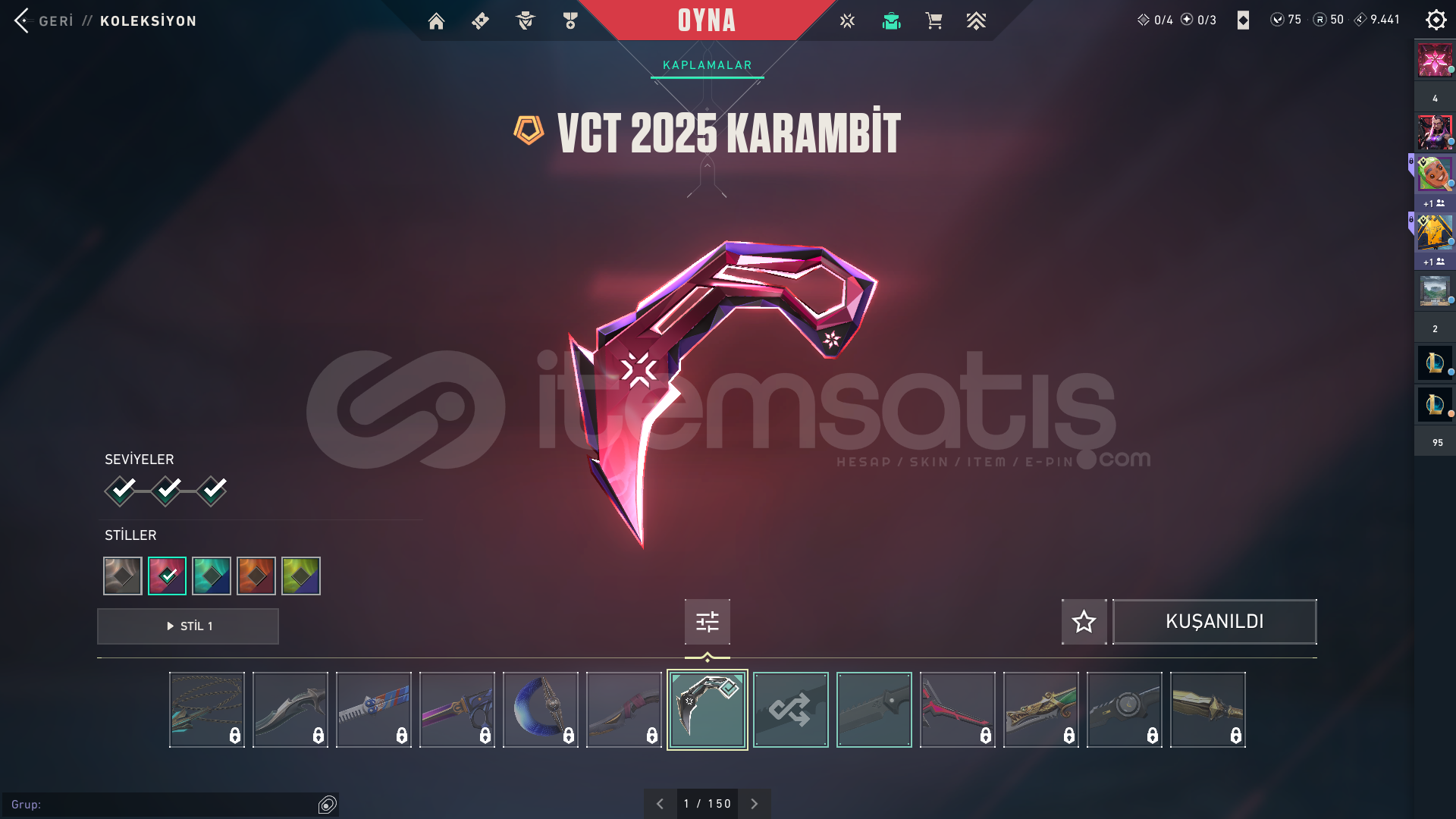 hesapta ulupençe vandal kaos vandal cyrax vandal yitik vandal kuronomi sherrif çarpaşık alemler ghost vct karambit vardır uygun fiyattır vct karambit baya değerli herşeyin skin varyantı açıktır satma sebebim 2. hesabım artık çok oynamıyorum birini satıp başka oyunlara para yatıracağım
