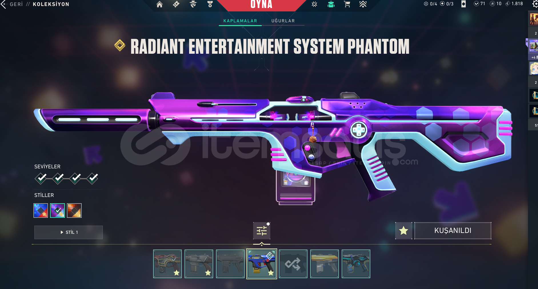 hesap tamamen bana aittir maximum plat olmuştur. resimde gördüğünüz gibisatıyorum çünkü bu hesabı hiç kullanmıyorum ve oyunu bıraktım.hesabın içinde:radiant entertainment system setneo frontier setvct lockchampions 2023 set ve daha fazlası..tam 7 bıçak var3 vandal3 phantomsatın aldığınızda hafta içi 17.00 dan sonra hemen teslim ederimHESABI ALDIKTAN SONRA T&...