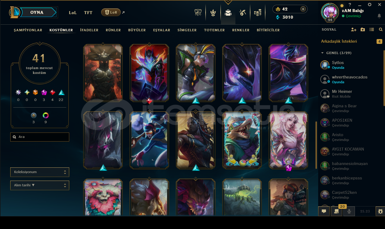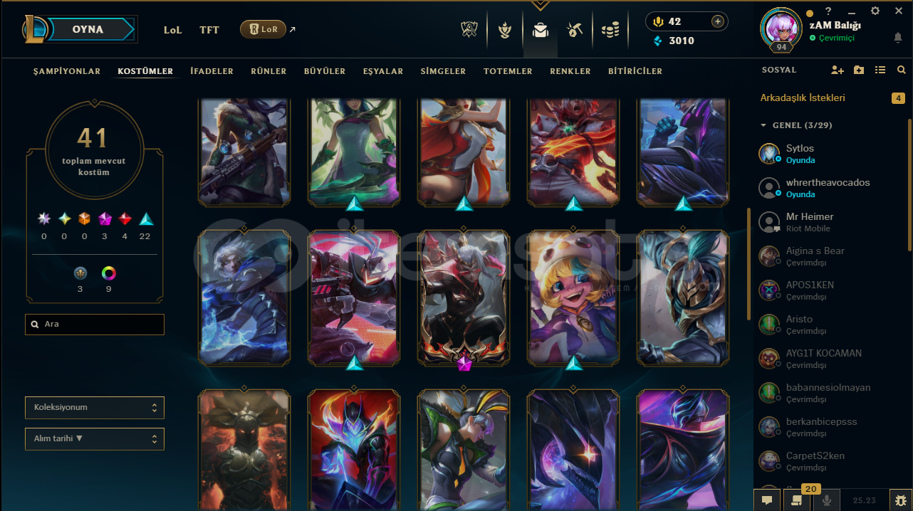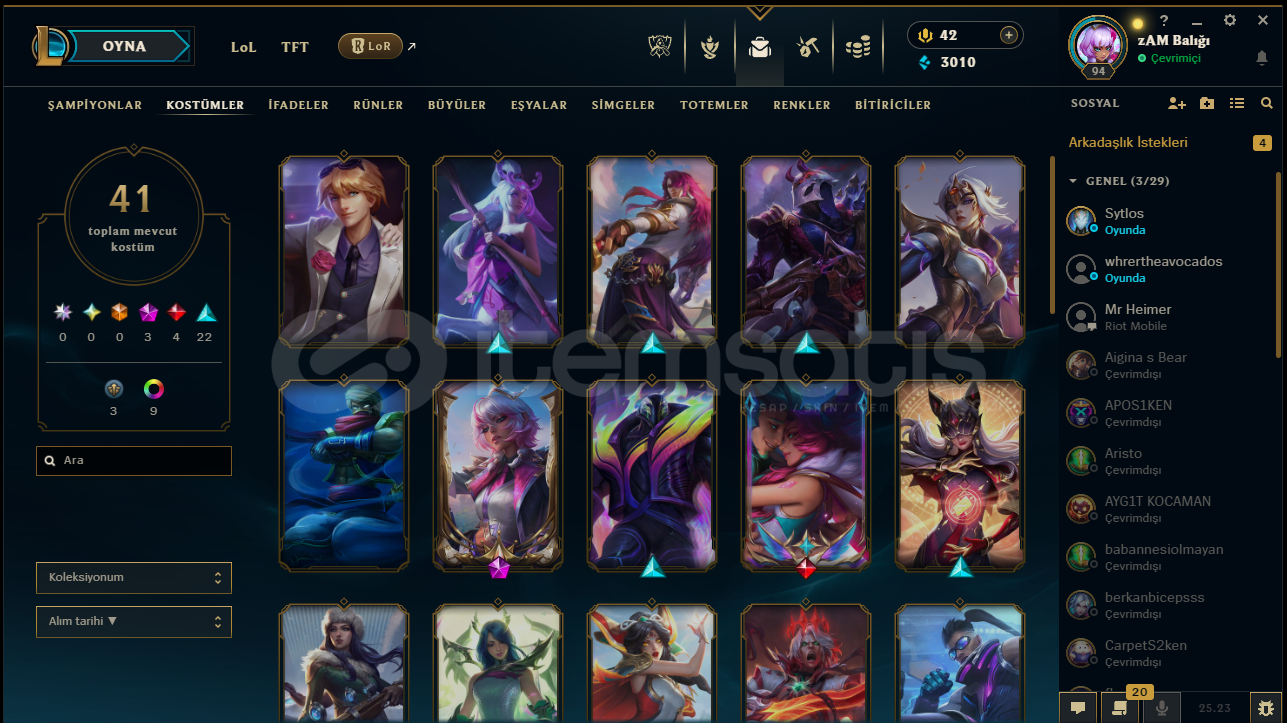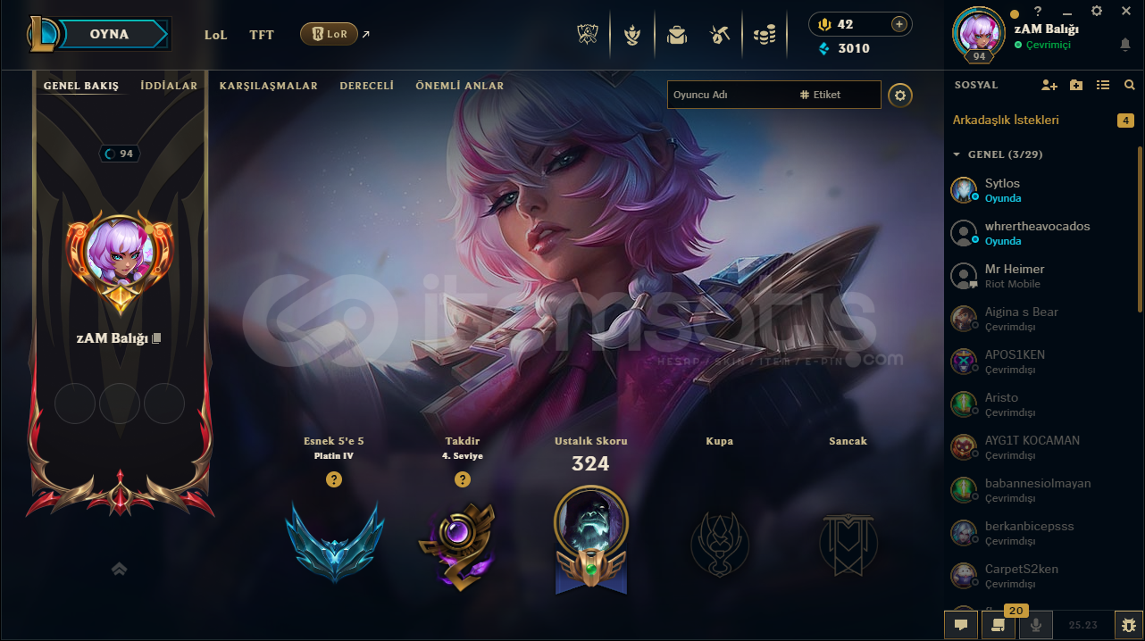 VALORANTAnomali Vandalİyon SherıfOni KatanaAsil BuckyGüncel rank PLAT2LOLTek-Cift Altın 4Esnek Plat 436 Adet kostüm bulunmakta84 LVTakdir seviyesi 4