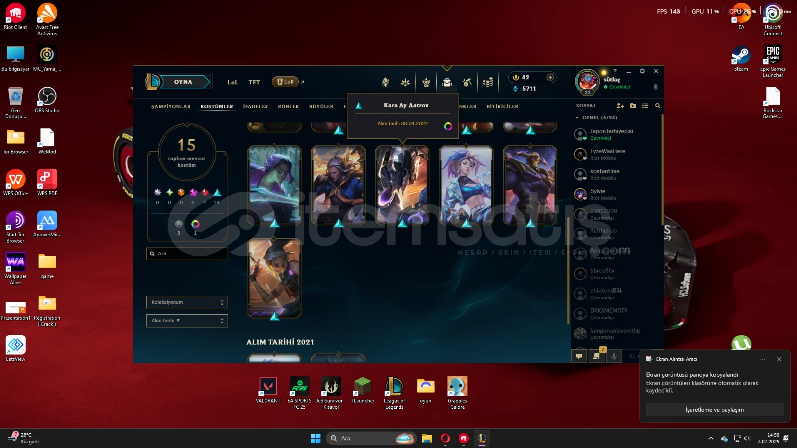 -LOL DETAY İSTEYENE YAZARIM 15 SKİN 1 EFSANEVİ YAZARIM 15 SKİN 1 EFSANEVİ