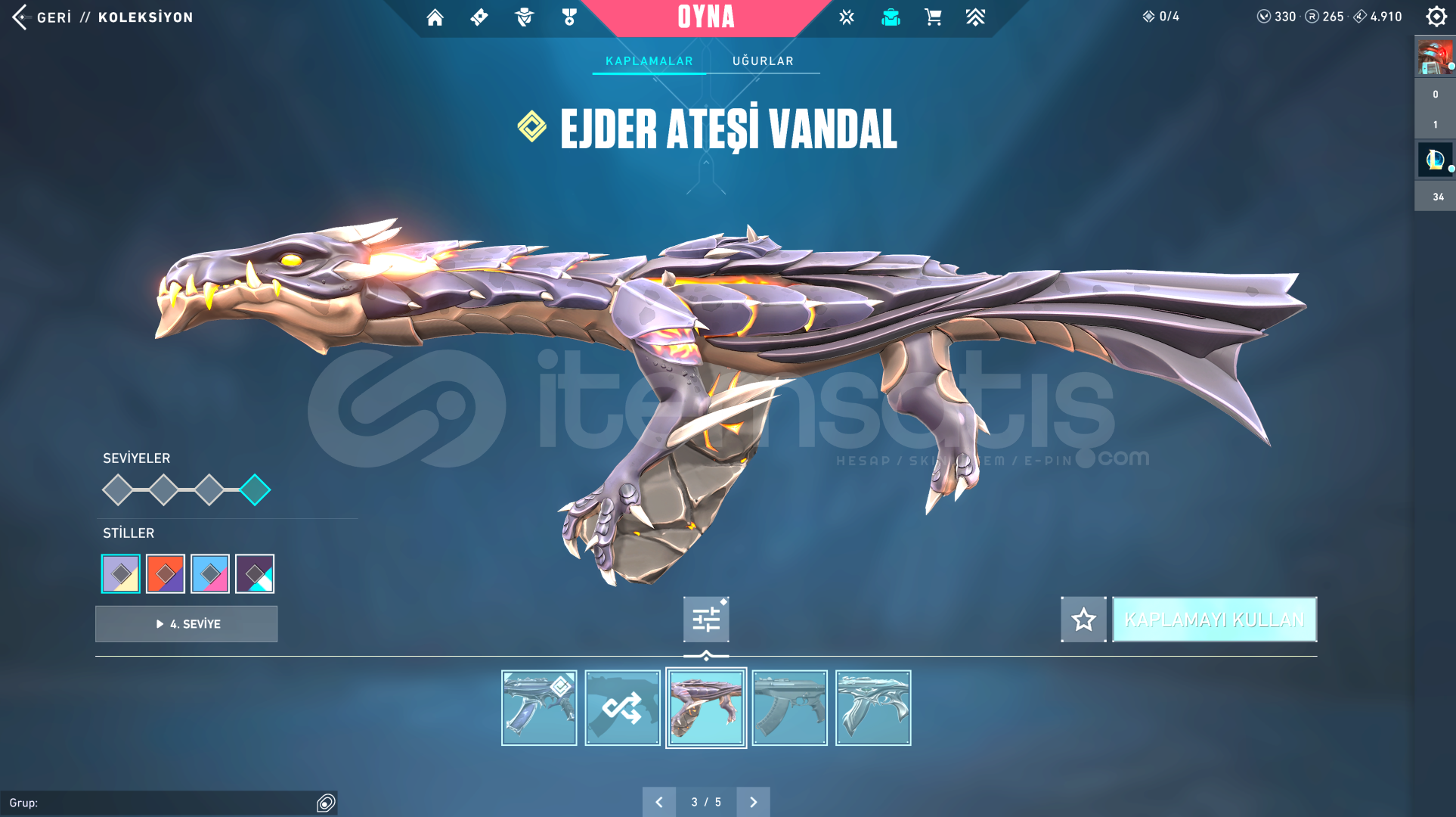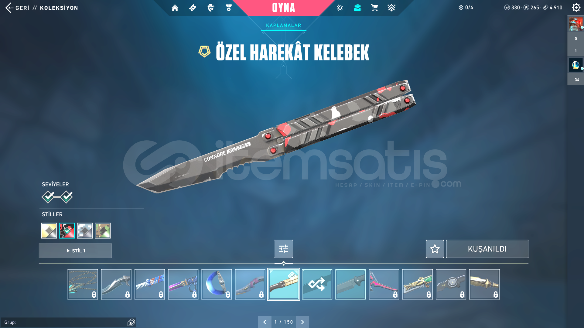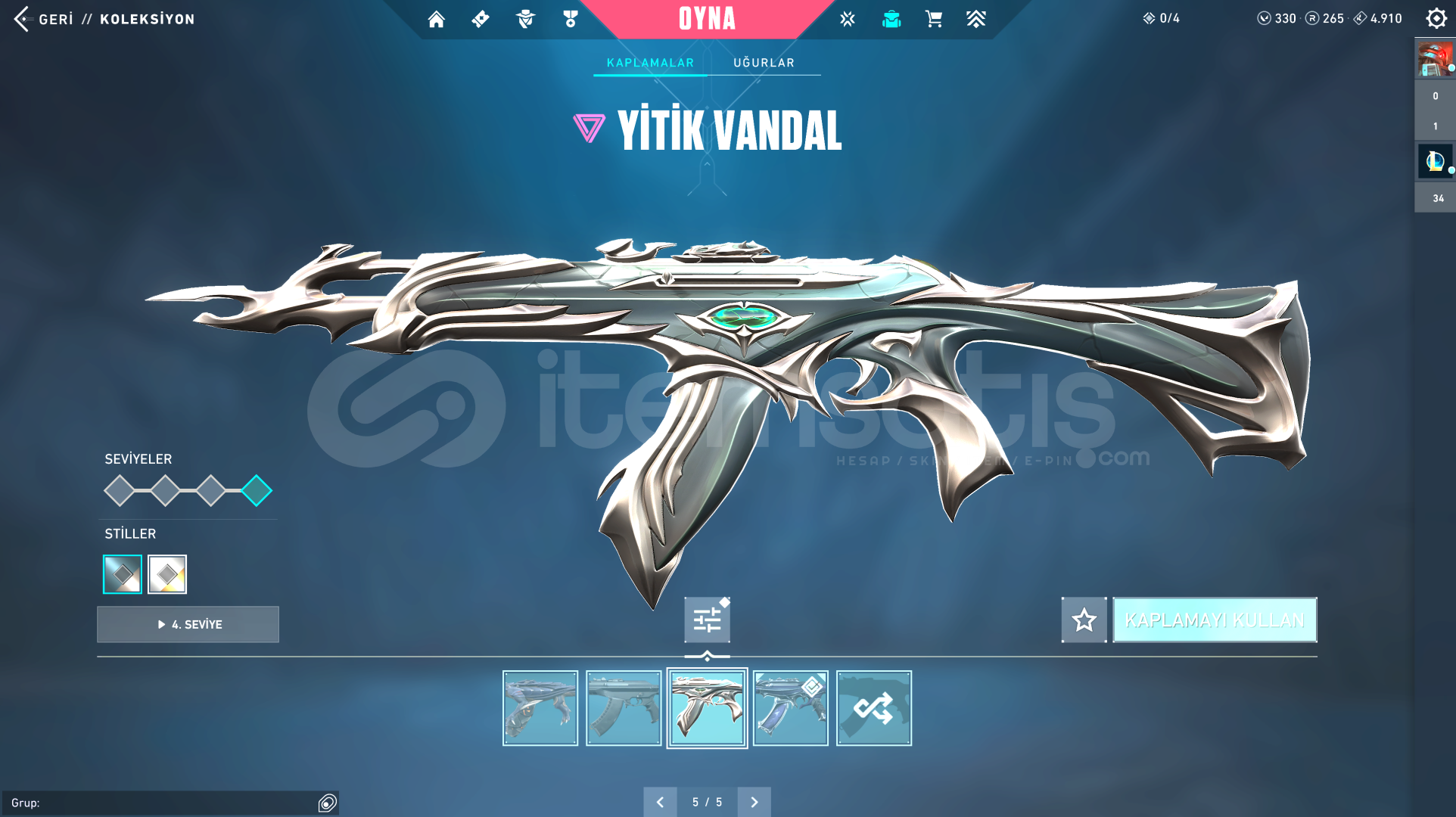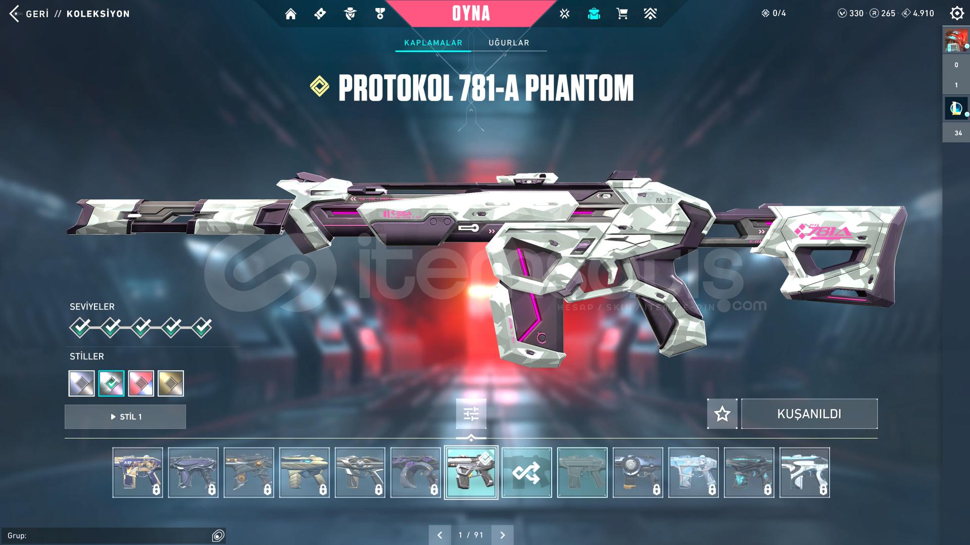 TÜM KARAKTERLER AÇIKVALORANT:330VP-264RP-4910KP VARGÜMÜŞ 1 ELOVANDAL: FULL SEVİYE; EJDER ATEŞİ - YAĞMACI - YİTİKPHANTOM: FULL SEVİYE; PROTOKOL 781-ABIÇAK: FULL SEVİYE; ÖZEL HAREKAT KELEBEKHESAP 118 SEVİYE GÜZEL ÇIKARTMALAR VE KOLEKSİYON KARTLARI VARLOL:110RP-1984MÖ3 HEXTECH SANDIĞI1 KOSTÜM KRİSTALİ14 KOSTÜM (2 EFSANEVİ- 12 DESTANSI) (HEP POPÜLER ŞAMP&#...