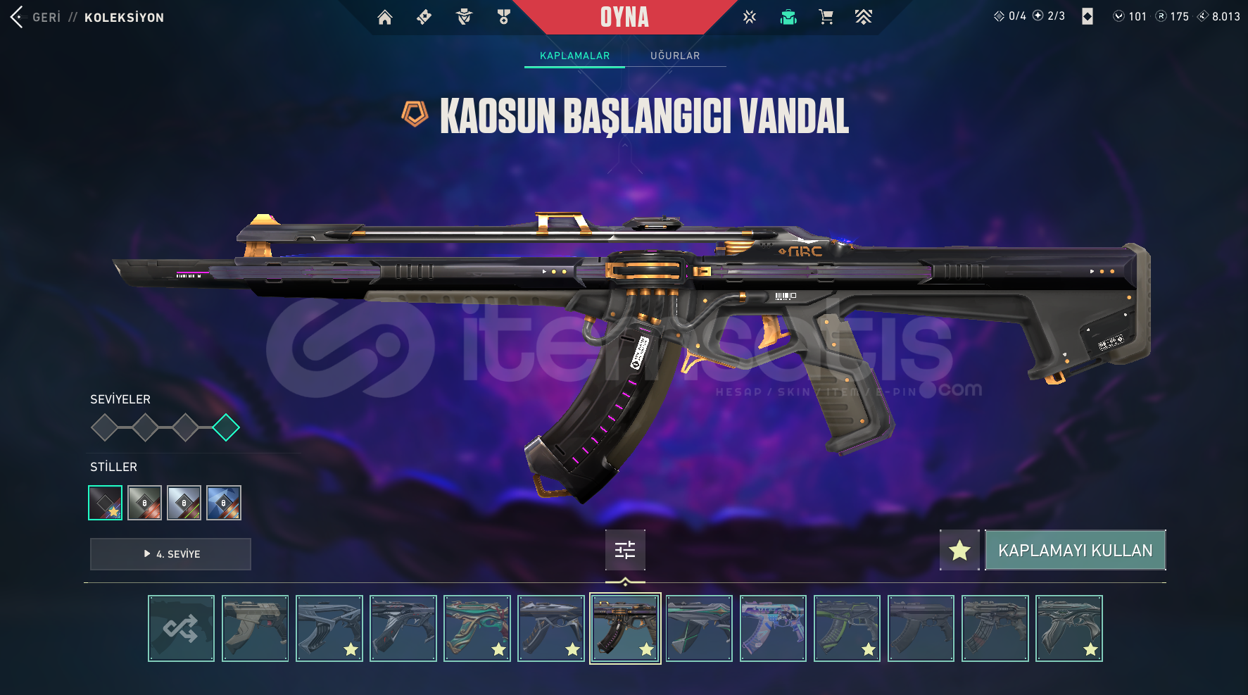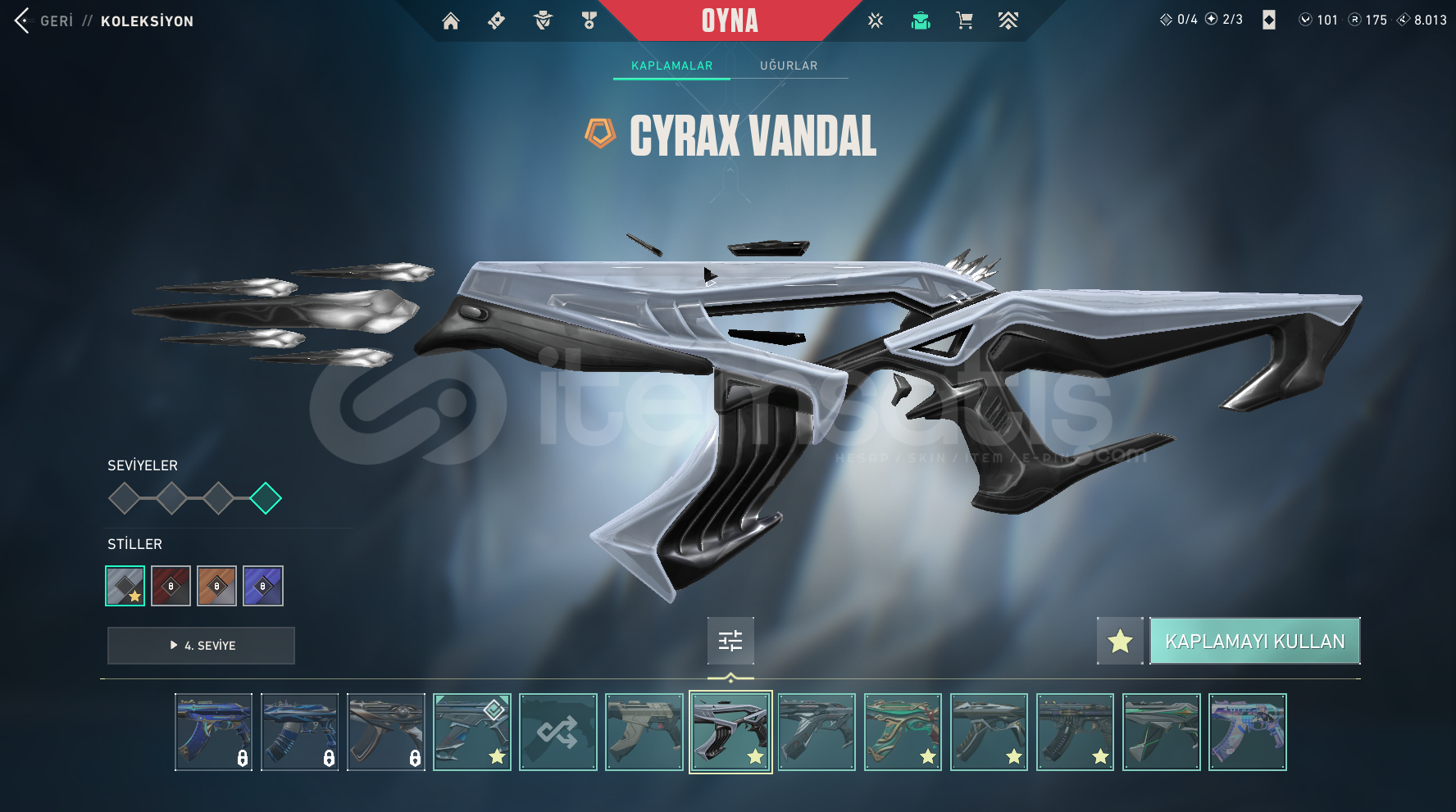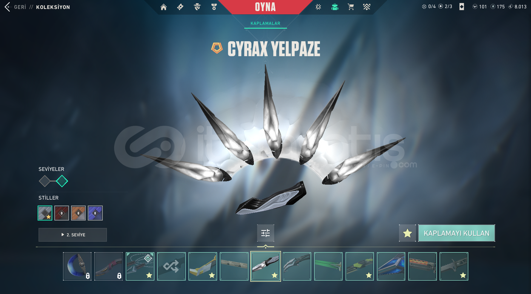 hesap içeriği:kuronami no yaibaasil karambitcyrax yelpazergx 11z pro bıçakuzaylı avcısı bıçakyitik ritüel bıçağıkuronami vandalcyrax vandalejderin buyruğu vandalışık muhafızı vandalkaosun başlangıcı vandalrgx 11z pro vandalyitik vandalanomali phantomışık muhafızı phantomexo sheriffseri tetik sheriffevori spectrecyrax stingercyrax guardiancyrax ghosty...