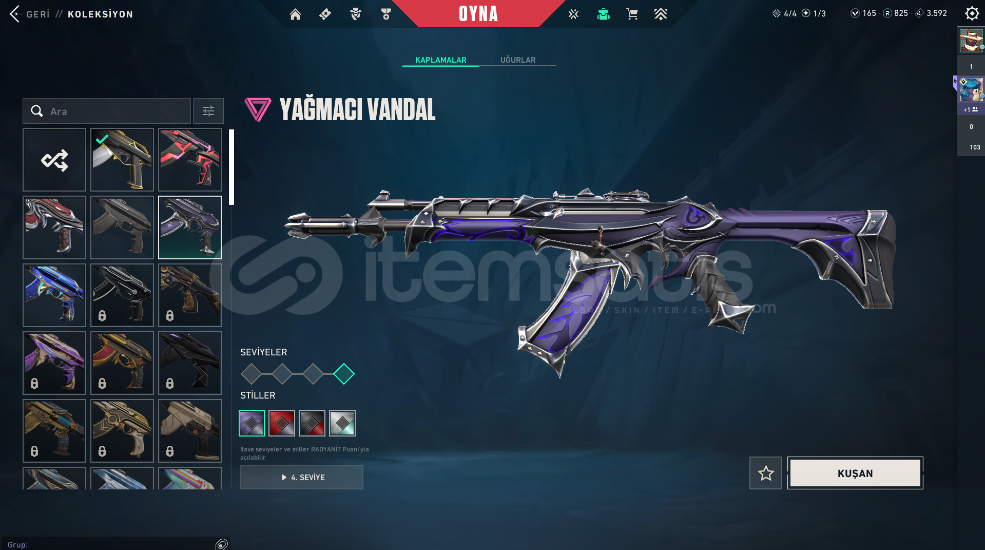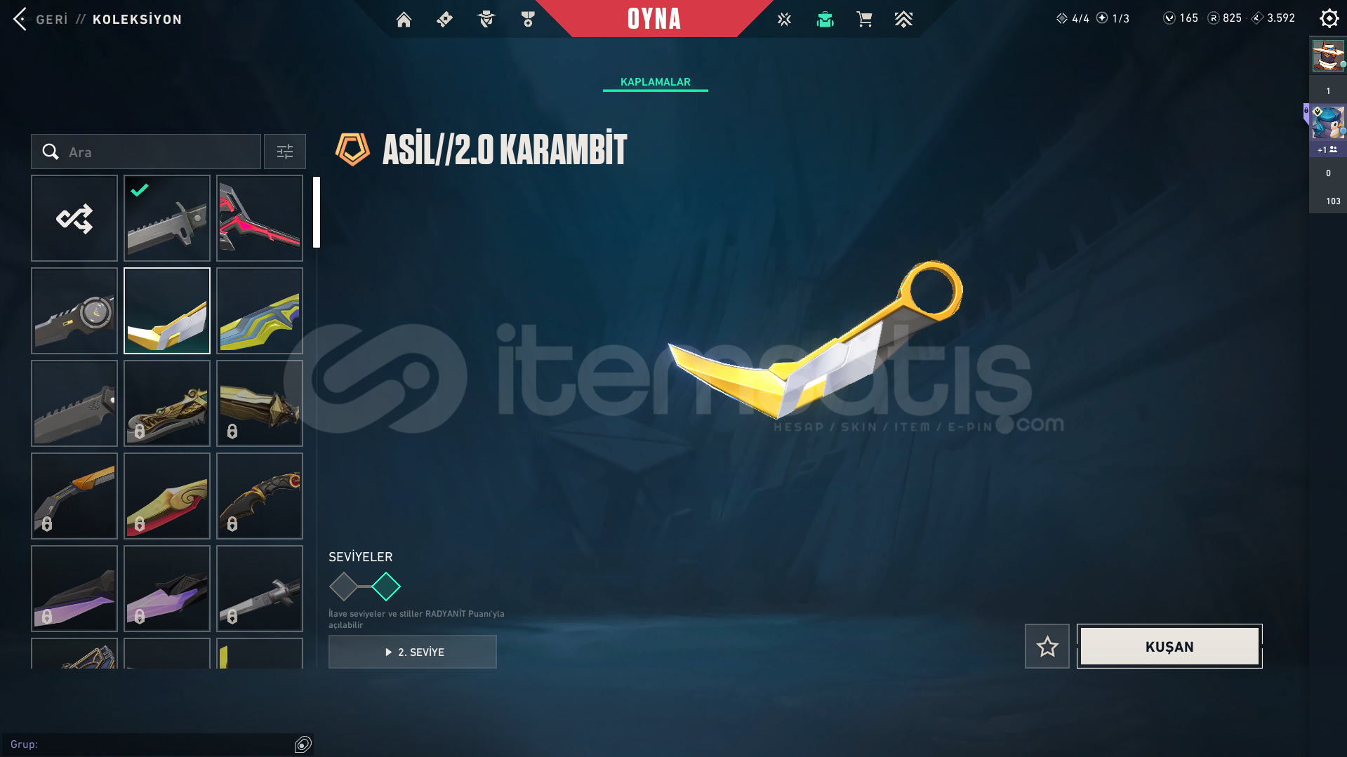 içinde birçok bp bulunurasil vandal karambituzaylı avcısı bıçağıözel harekat phantomoni phantomve daha sayamadğım bp ve diğer desenlerrandomdur hesap görseldekiler çıkar