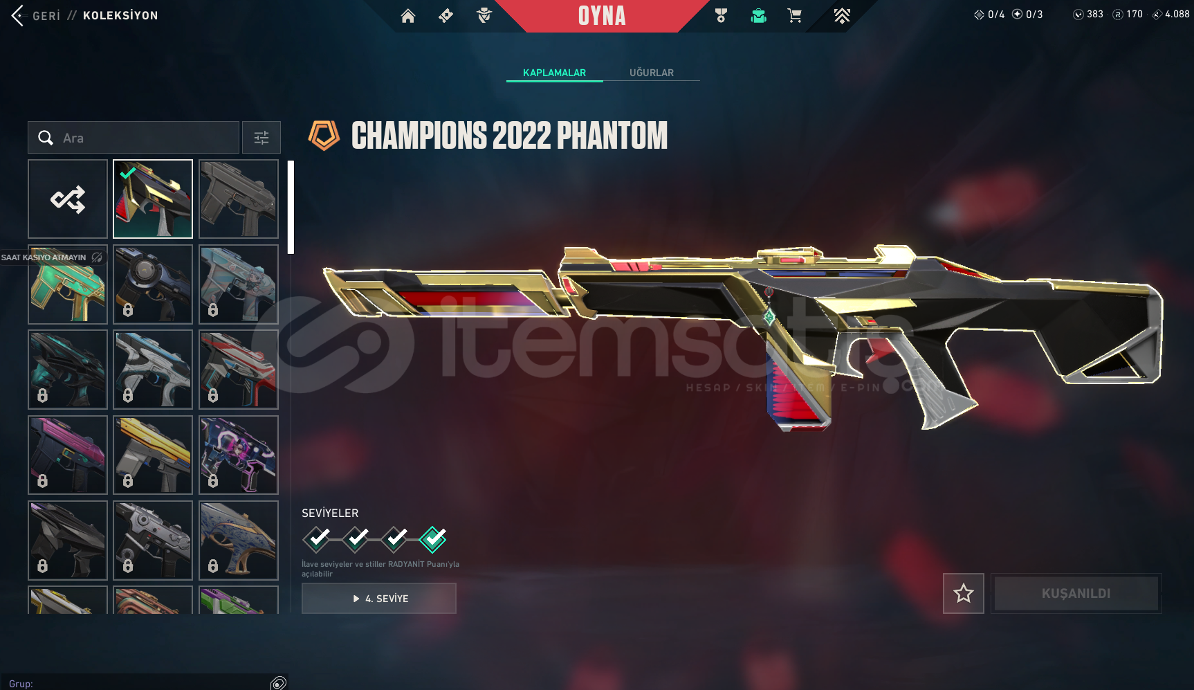 70 skine yakın toplam skin var bp skinleri ile beraber