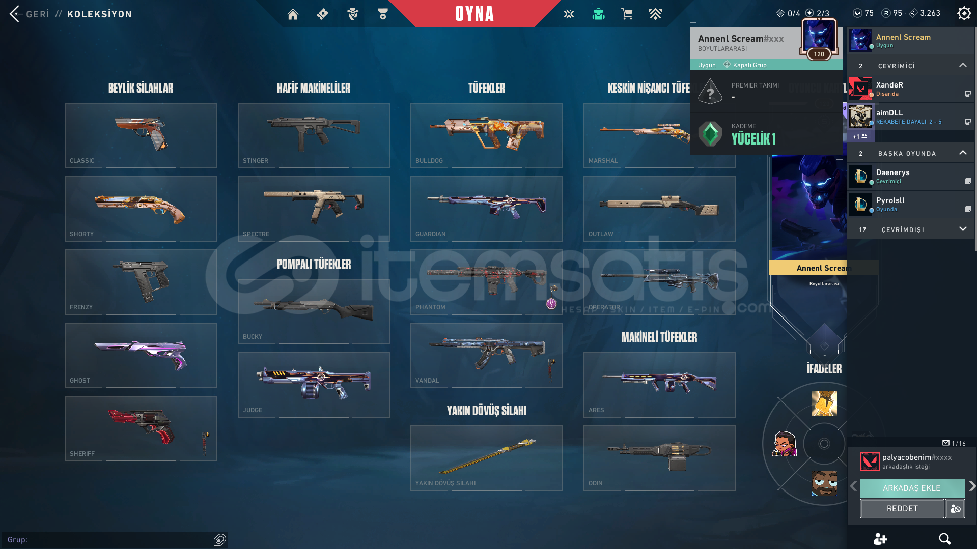 !!!TELEFONLA İLETİŞİME GEÇMİYORUM!!!---------------------------------------Kaos Vandal-Champions 2025 Vandal-Soğuk Çelik Vandal-Aemondır Vandal-Özel Harekat Phantom-RGX Katana-Champions 2025 Kelebek-Cesur Yurek Operator-UluPençe Ghost-Exo Sheriff-Asil Classic-Denge Yelpaze2 Tane Bp------------------------!!!TELEFONLA İLETİŞİME GEÇMİYORUM!!!PAZARLIK YOK