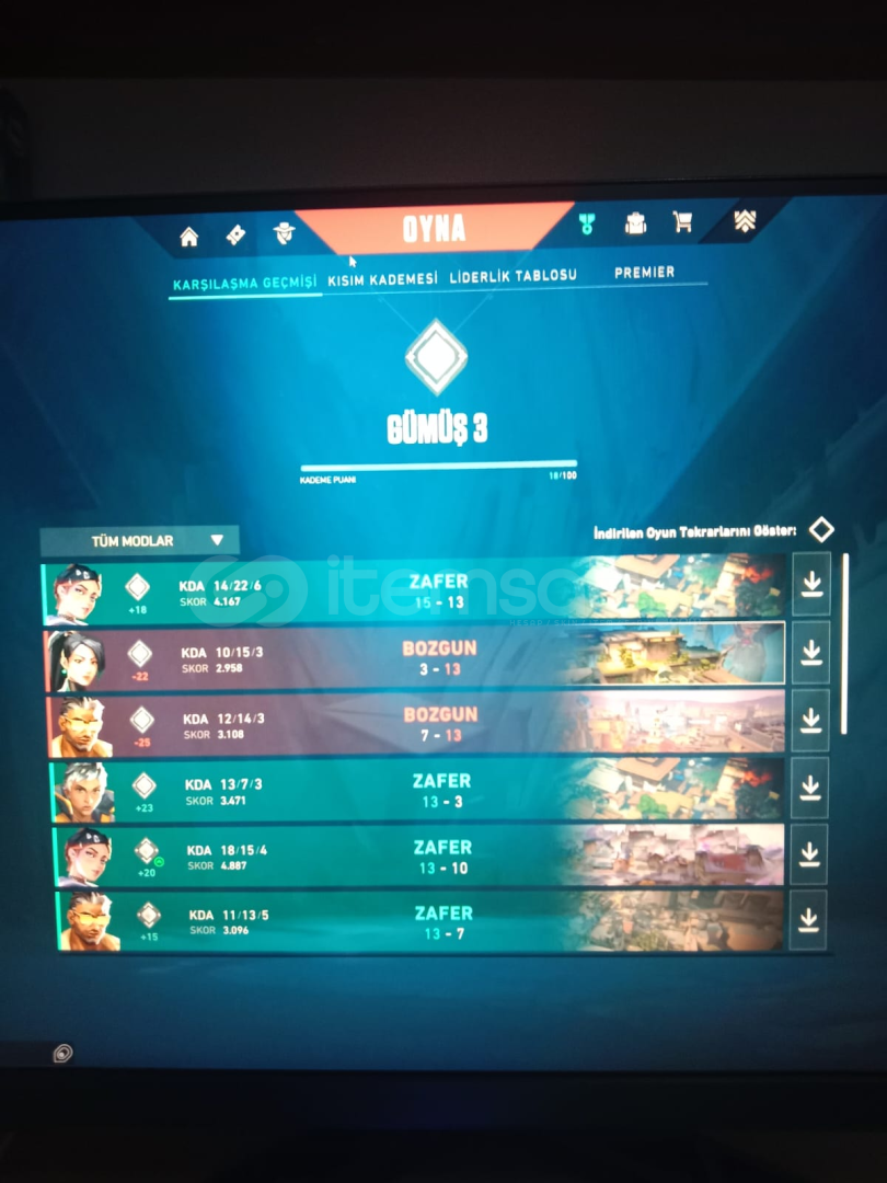 Hesapta Ejderin Buyruğu Vandal ,Spectrum Phantom,Onimaru(Oni)Katana,Yağmacı Odin,Ejder Operatör,Yağmacı Specterun,Sezon 2025// Kısım 04 ve 05 Savaş Bileti BulunuyorNot:Desenlerin Hepsinin Renk Seçenekleri Ve Animasyonları Full // Ayrıca 60 Radyant Puanı Var Şuanki Savaş Bileti Alınmamış // Değişme Ve Pazarlığa AçıktırHesabın Leveli: 69Rank: Gümüş 3
