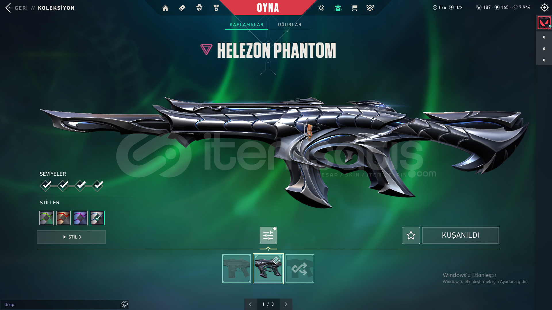 HESABIMIZDA HELEZON PHANTOM 1 ADET BICAK SKİNİ NEPTUN VANDAL VE ASİL VANDAL BULUNMAKTADIRHESABI ELİMDEN GELDİGİNCE UCUZA KOYMAYA CALISTIM ALICISINA ŞİMDİDEN HAYIRLI OLSUN.