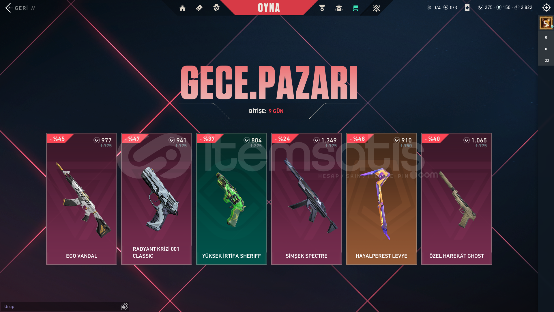 Hesap Durumu: [ASİL VANDAL , ONİ VANDAL , SİHİRPUNK PHANTOM , YAĞMACI PHANTOM]