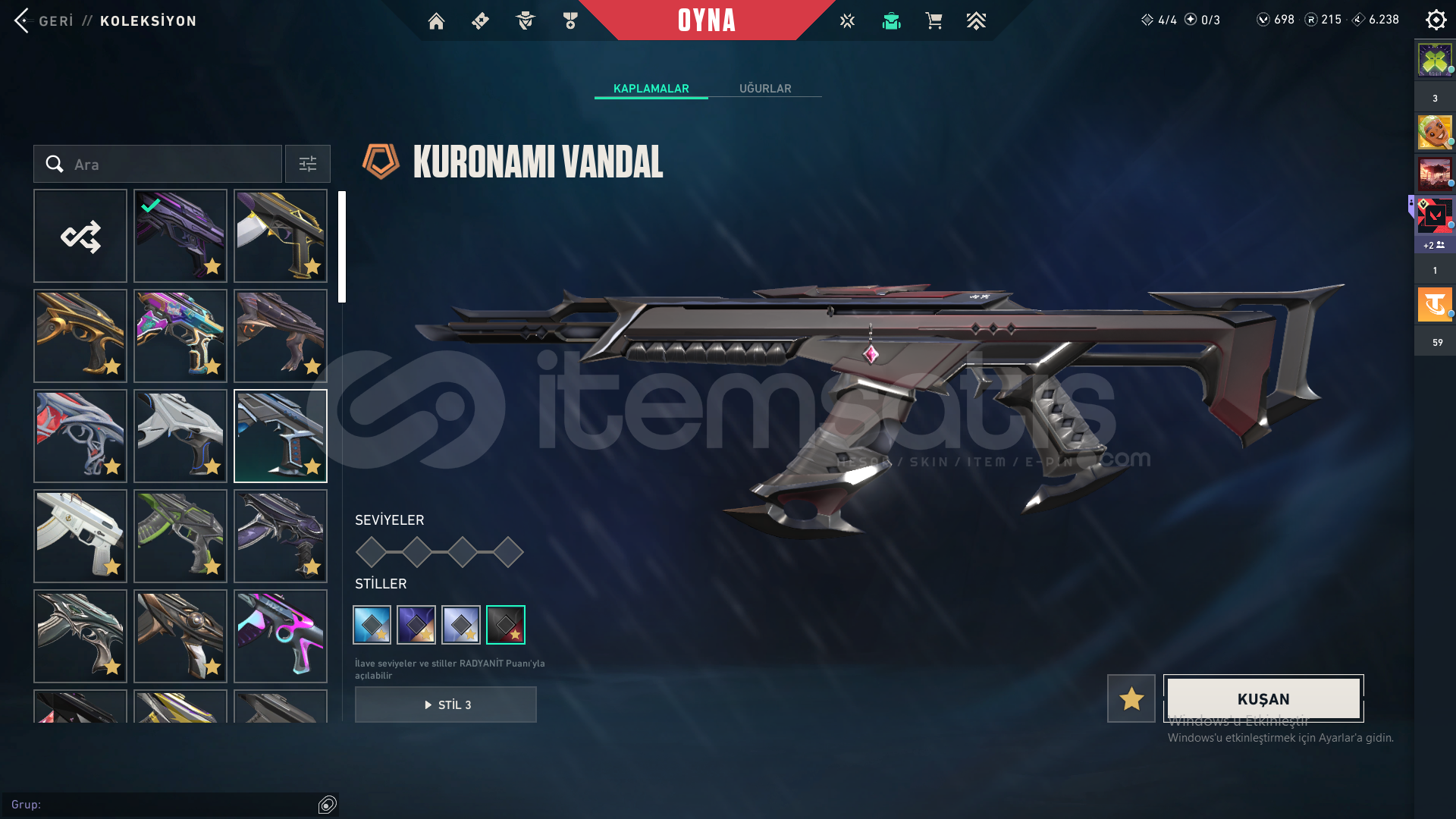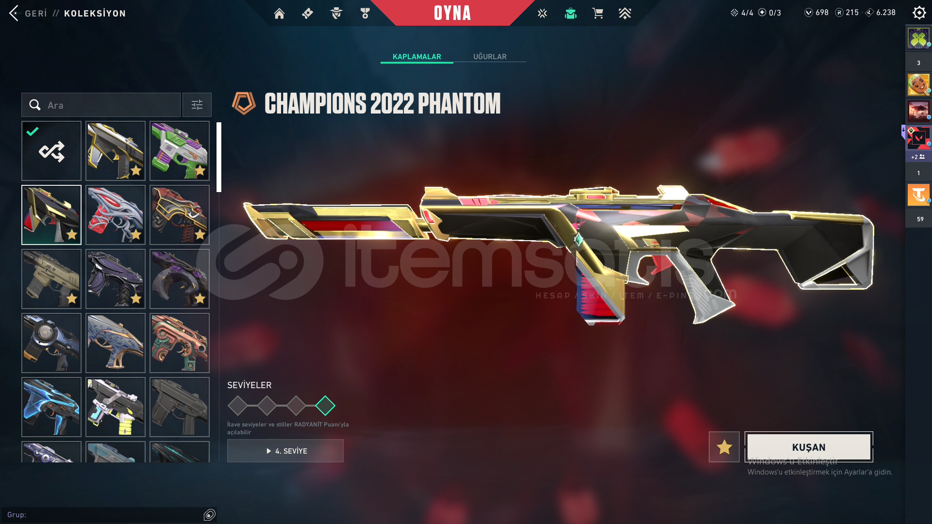 Sitede bundan daha premium bi hesap bulamazsınız detaylar için yazabilirsinizayrıca hesap immo görmüştür o yüzden mmrı yüksek kazandıgınızda 25 kaybettiğinizde 12-13 civarı kaybedersinizresime sığmayan skinler:-fatih marshall-yağmacı ve köken op-geriye kalan silahlarda bp skinleri mevcut 10-12 tane vandal 8-10 tane falan phantom var galiba saymadım fotoğraflardan sayabilirsiniz ;*...