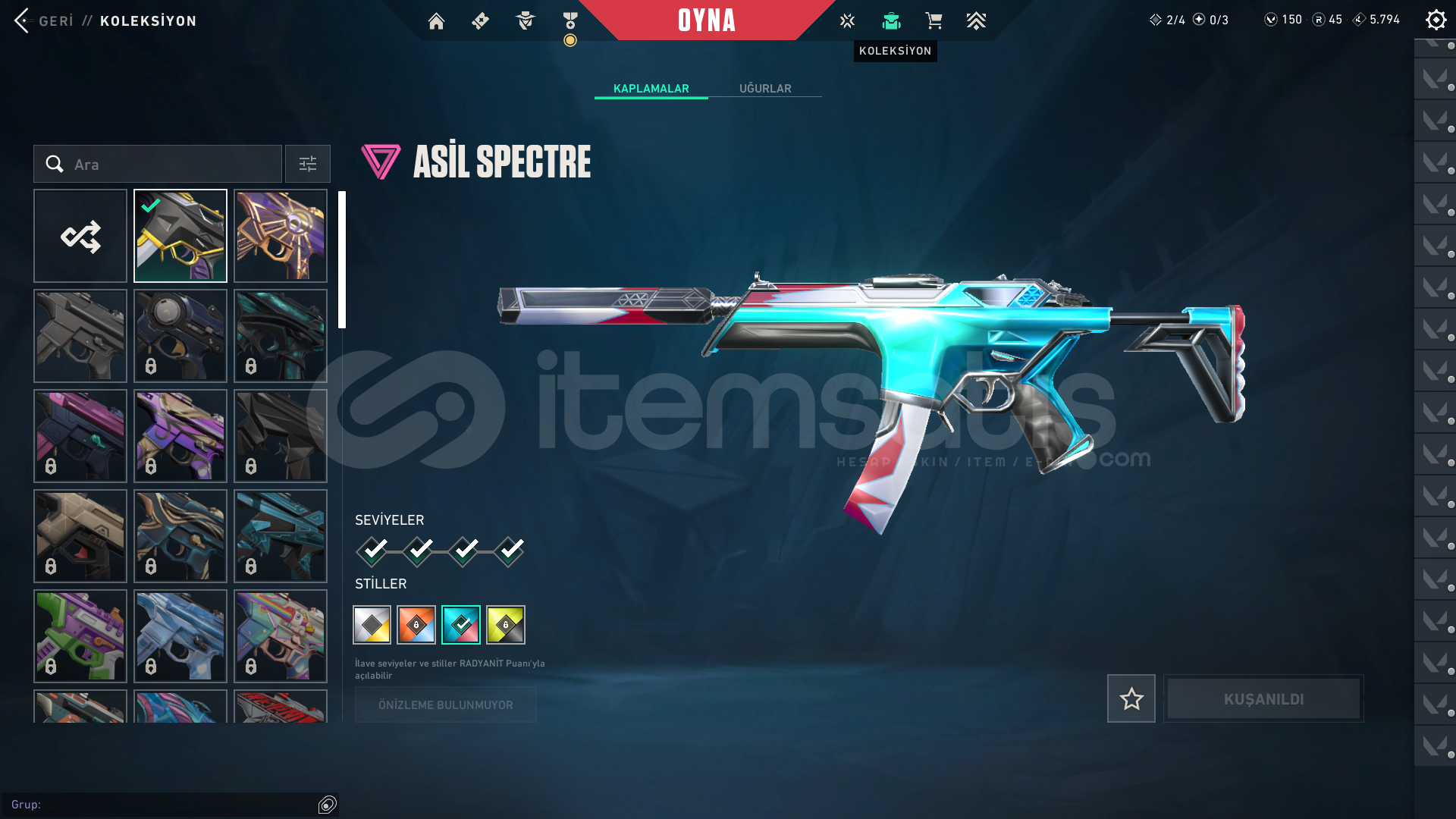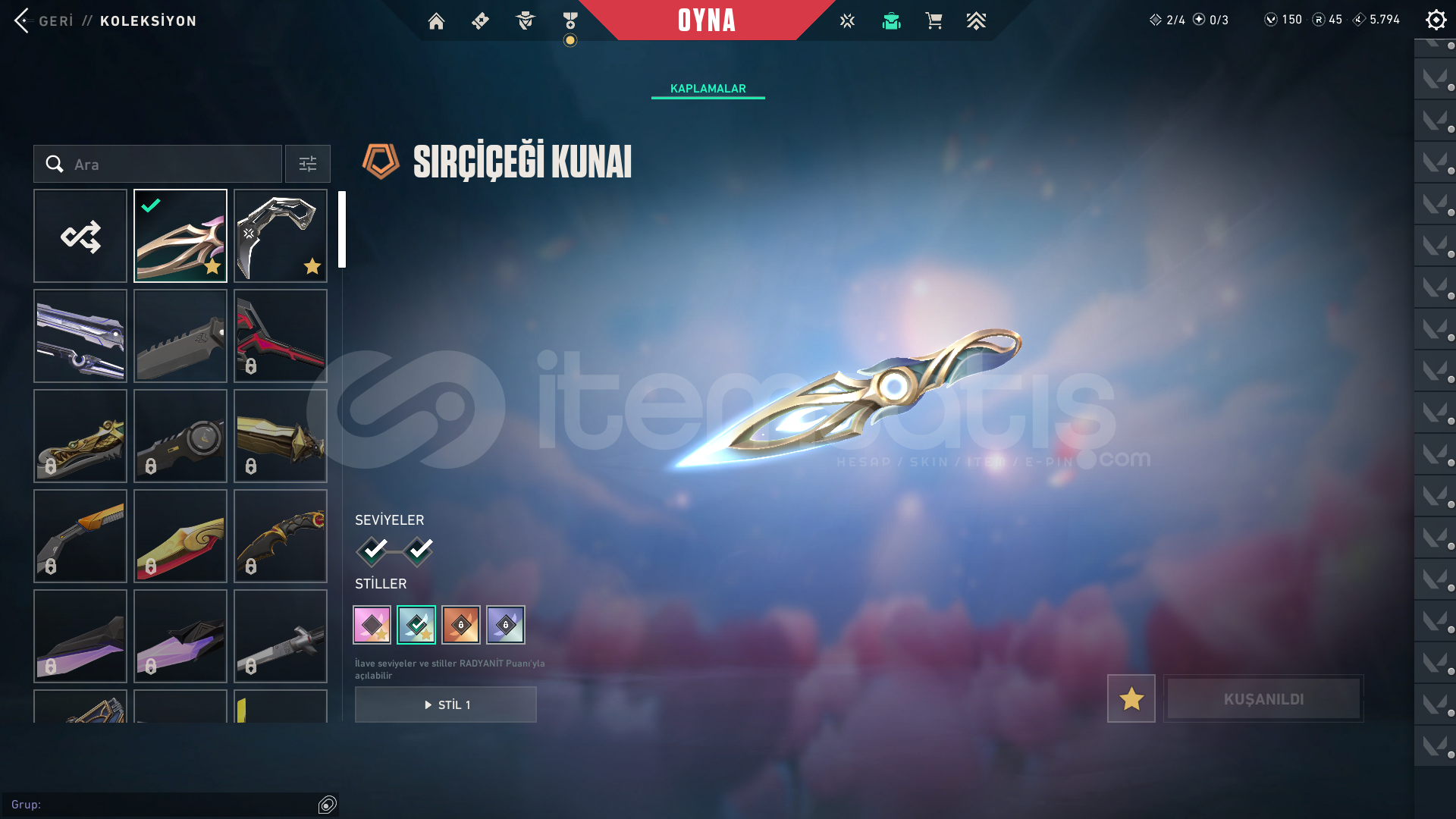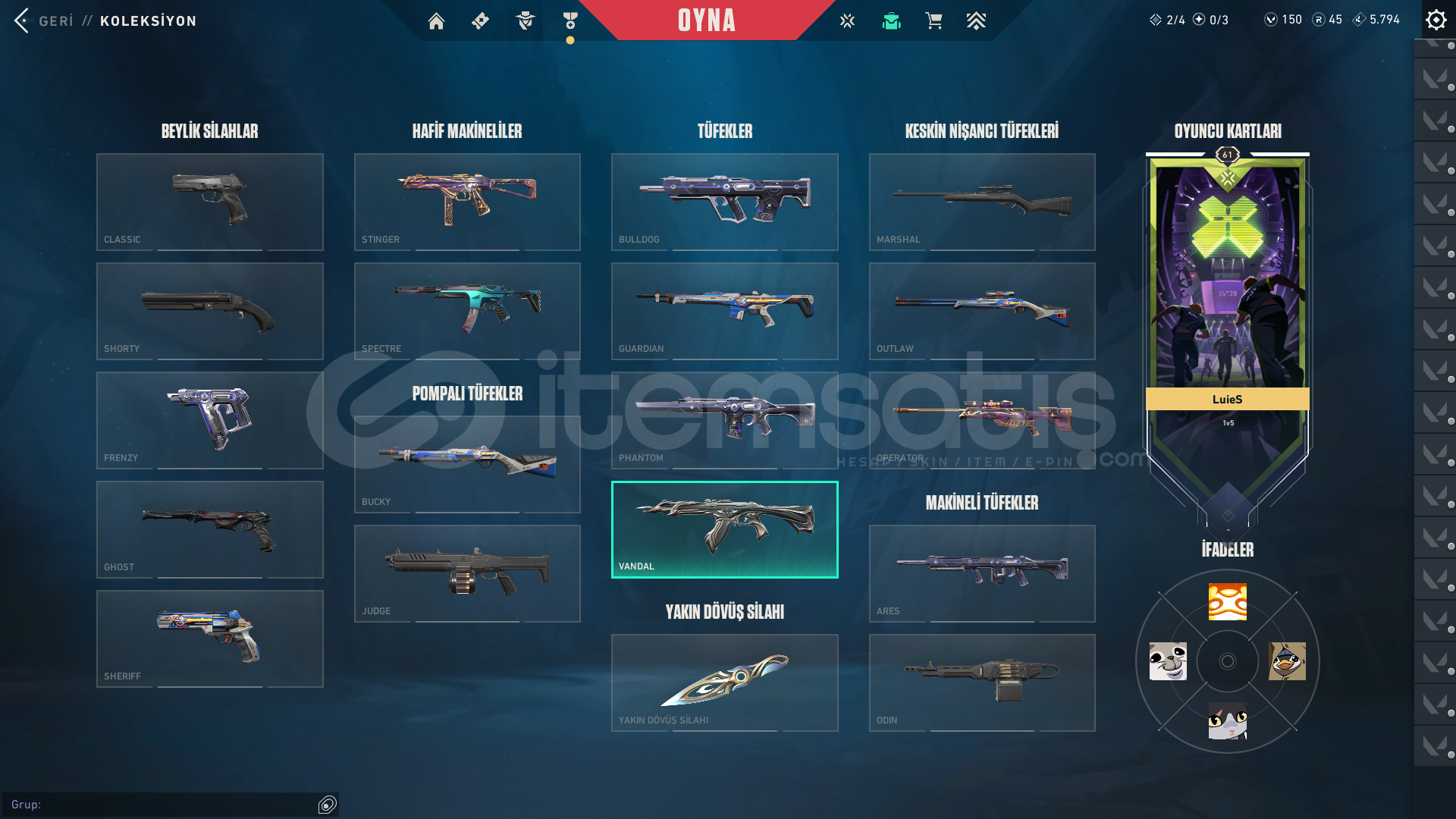 HESAP DA GÖRÜNDÜĞÜ GİBİ NE FAZLA NE EKSİK EVORİ VANDAL VCT KARAMBİT VARDIR