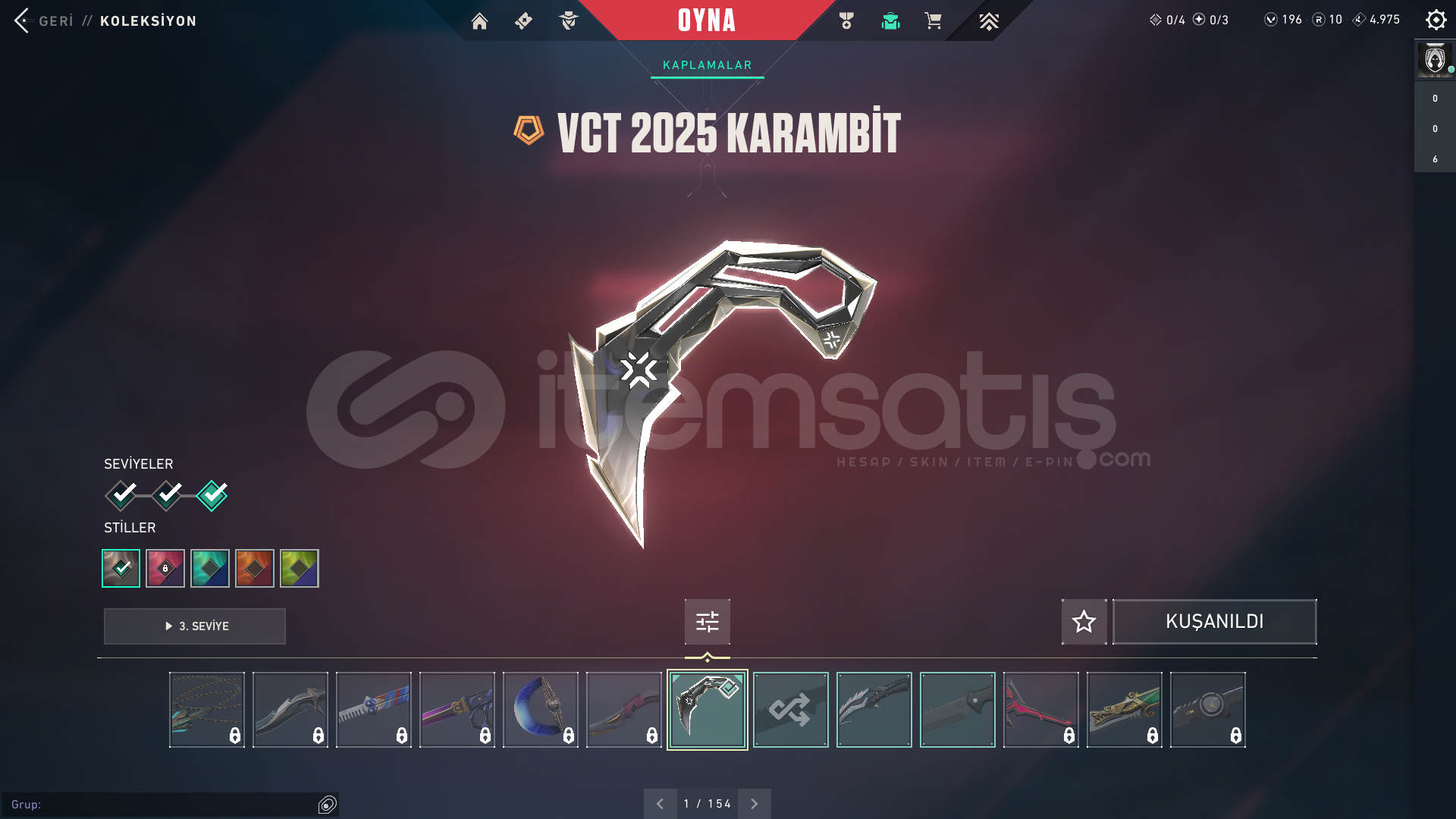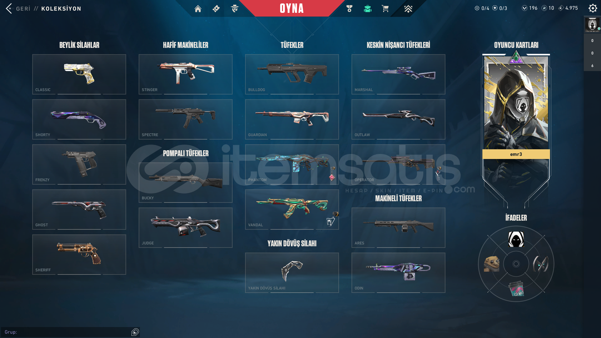Öncelikle MerhabaBIÇAKVCT 25 KARAMBİTVANDALEJDERİN BUYRUĞU VANDAL + CYRAX VANDALPHANTOMZİFİRİ PHANTOM+GAİA PHANTOMOPERATORKAOS OPSHERİFSİHİRPUNK SHERİFCLASSİCVCT 25 CLASİCHESABIMIZDA 1 KERE BATTLE PASS AÇILMIŞTIR BU YÜZDEN HESAPTA SKİNSİZ SİLAH AZDIRHESABIN HERHANGİ BİR SIKINTISI YOKTUR GÖNÜL RAHATLIĞIYLA ALABİLİRSİNİZ CÜZZİ MİKT...