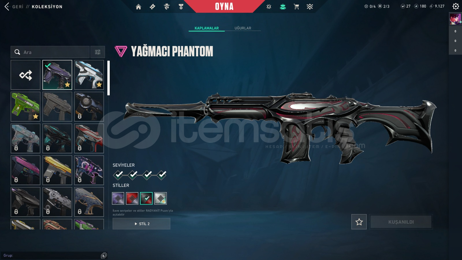 Uygun fiyata valorant mainlemelik hesap! Hızlı teslimat, full erişim!ㅤHesap Hakkında Bilgiler:✨Skinler : ✨VCT 2025 KARAMBİT✨ANOMALİ VANDAL✨ONİ VANDAL✨ÖZEL HAREKAT KELEBEK✨YAĞMACI SHERIFF✨AEMONDIR SHERIFF✨YAĞMACI PHANTOM✨YILDIZ BELASI OPERATÖR✨ULUPENÇE BIÇAK✨POPSTAR IŞIK ÇUBUĞU✨YİTİK VANDAL✨VE DAHA FA...