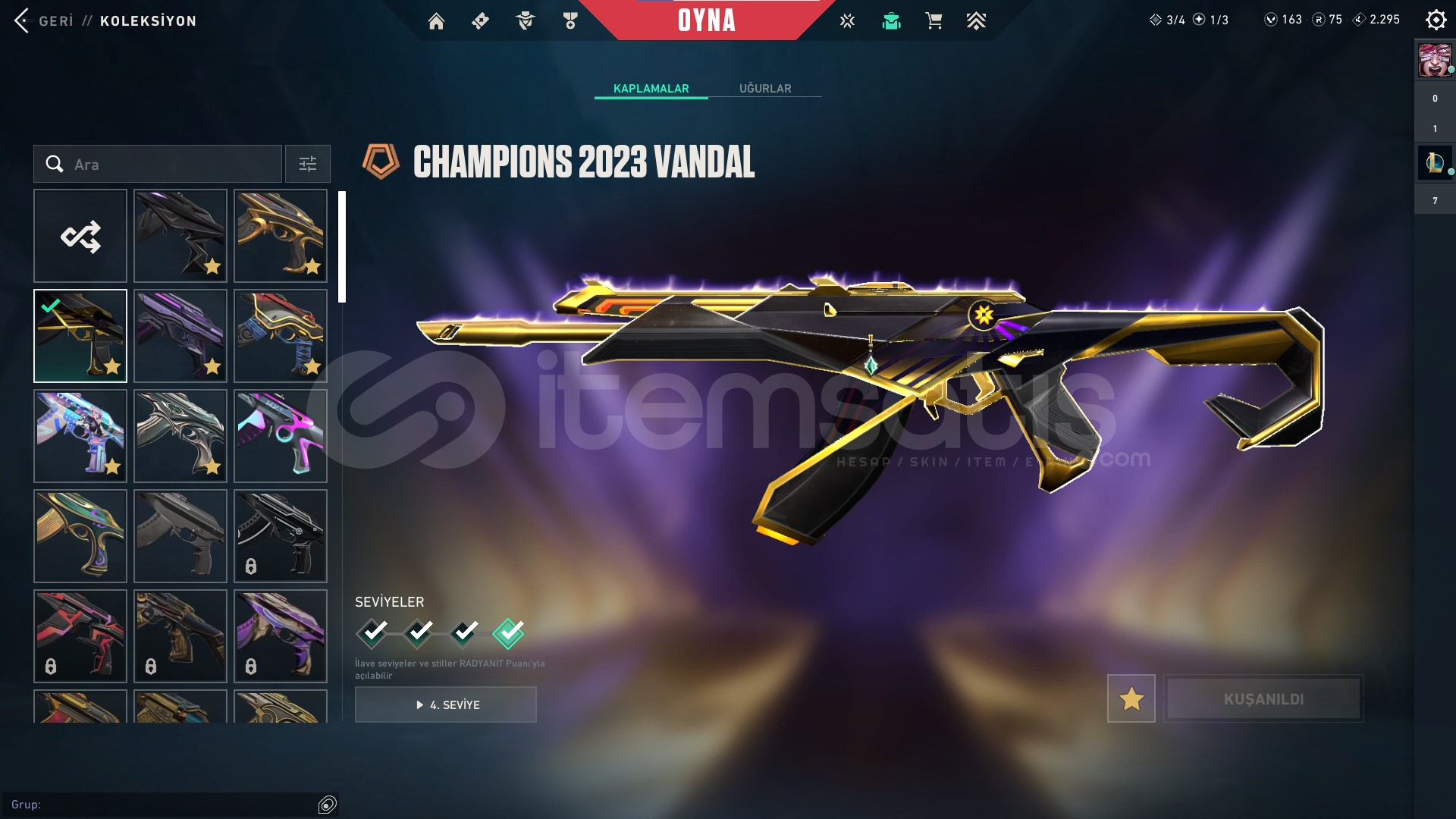 9.BÖLÜM 3. SEZON YÜCELİK DOLU ENVANTER HESAPŞuanda rankı diamond 1 olmaktadır.TEK SAHİBİYİM HERHANGİ BİR SORUN YAŞAMAZSINIZVALORANT HARİCİ WİLD RİFT HESABIDA MEVCUTTUR HESAPTAKİ SKİNLERE GEÇMEDEN ÖNCE DAHİL ETMEDEĞİM BATTLEPASSLER VE OYUNA BİR DAHA GELMEYECEK OLAN CHAMPİONS 2023 VE VCT LOCKİN BIÇAKTA HESABIMDA MEVCUTHESAPTAKİ SKİNLERSPECTRUM CL...