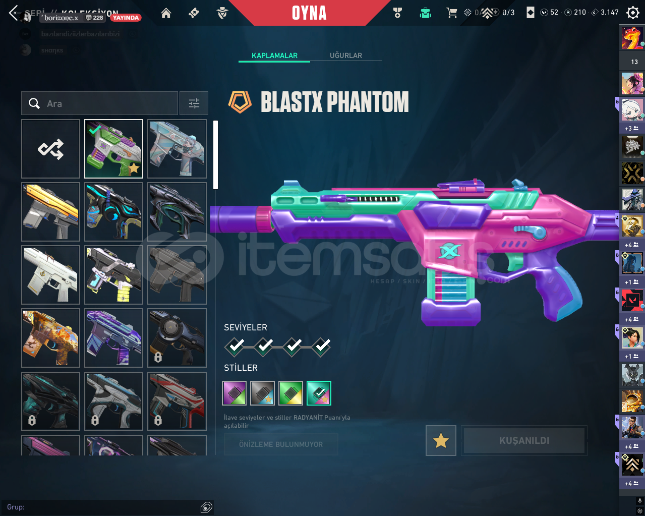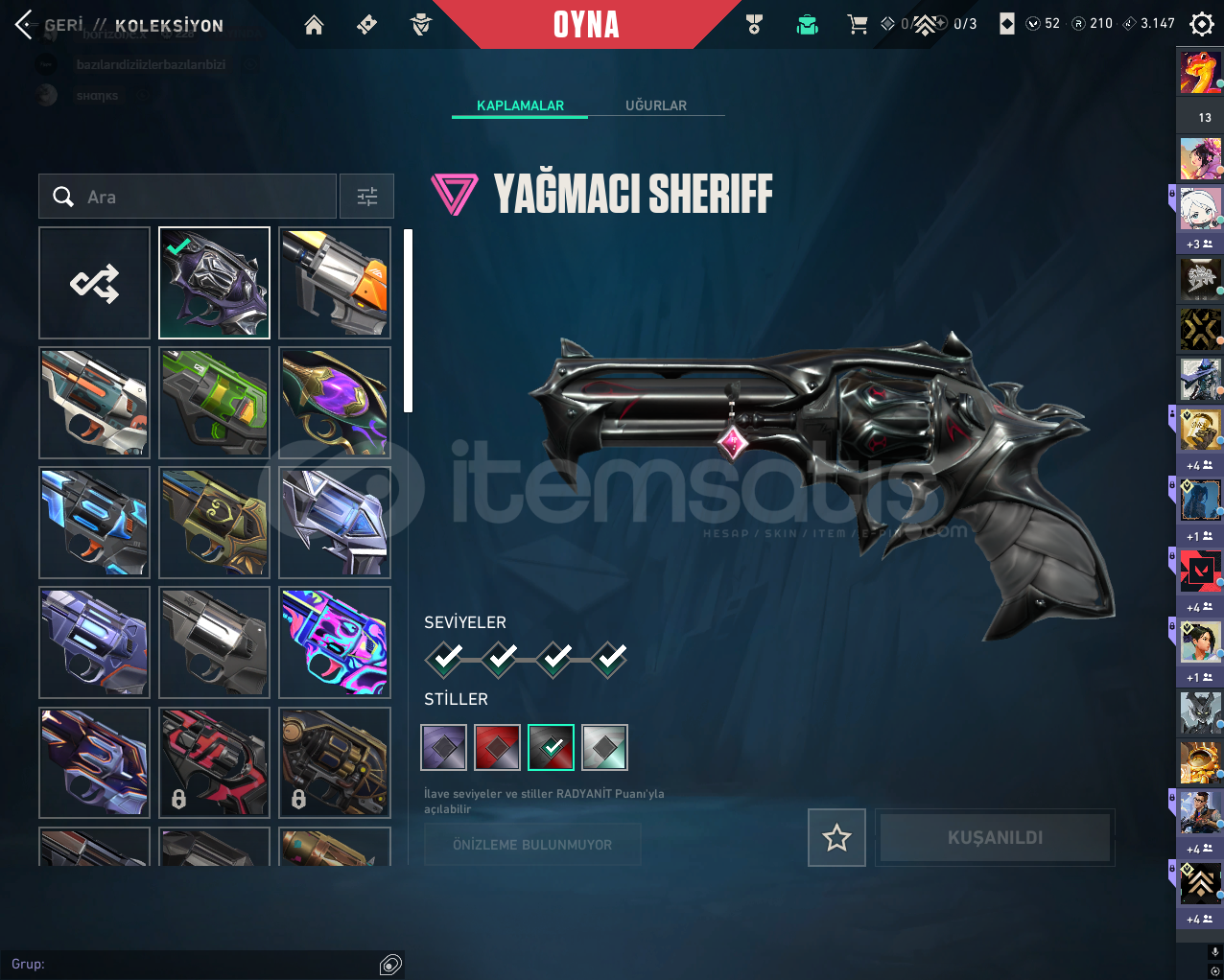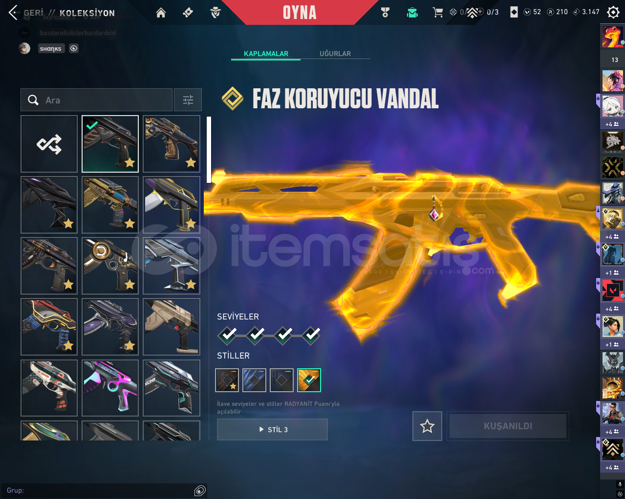 ASİL CLASİCONİ FRENZY FATİH GHOST YAĞMACI SHERİFNEPTÜN SPECTRE ONİ BULLDOGYAĞMACI GUARDİANBLASTX PHANTOMHELEZON PHANTOM NEPTÜN PHANTOM FAZ KORUCU VANDALAEMONDIR VANDALANOMALİ VANDAL ARCANE VANDAL ASİL VANDALKAOS VANDAL KÖKEN VANDALKRONOMİ VANDALONİ VANDAL YAĞMACI VANDAL EJDER OPERATÖRONİ ARESVTC LOCK İN MERHAMET BIÇAĞI ONİ KATANA