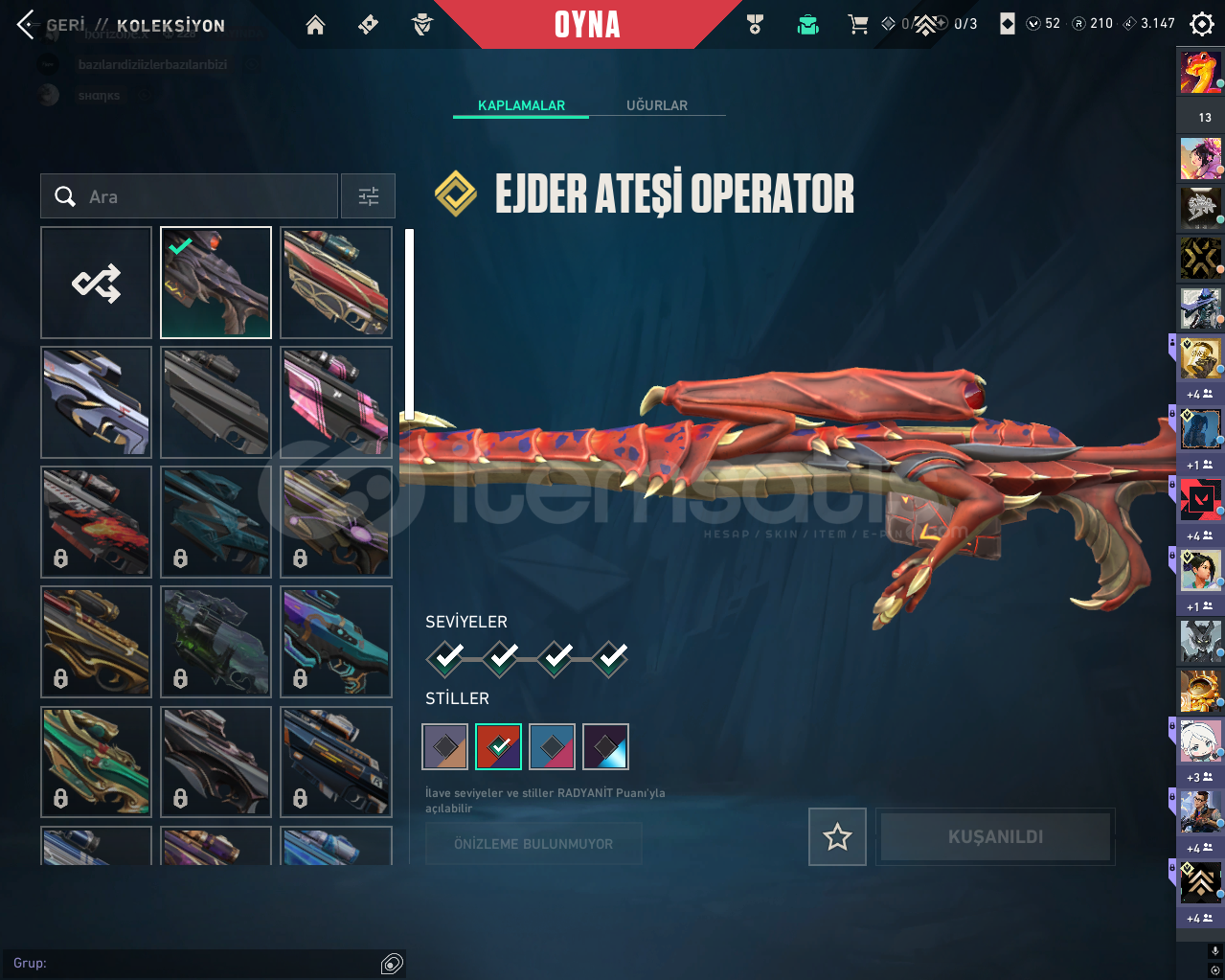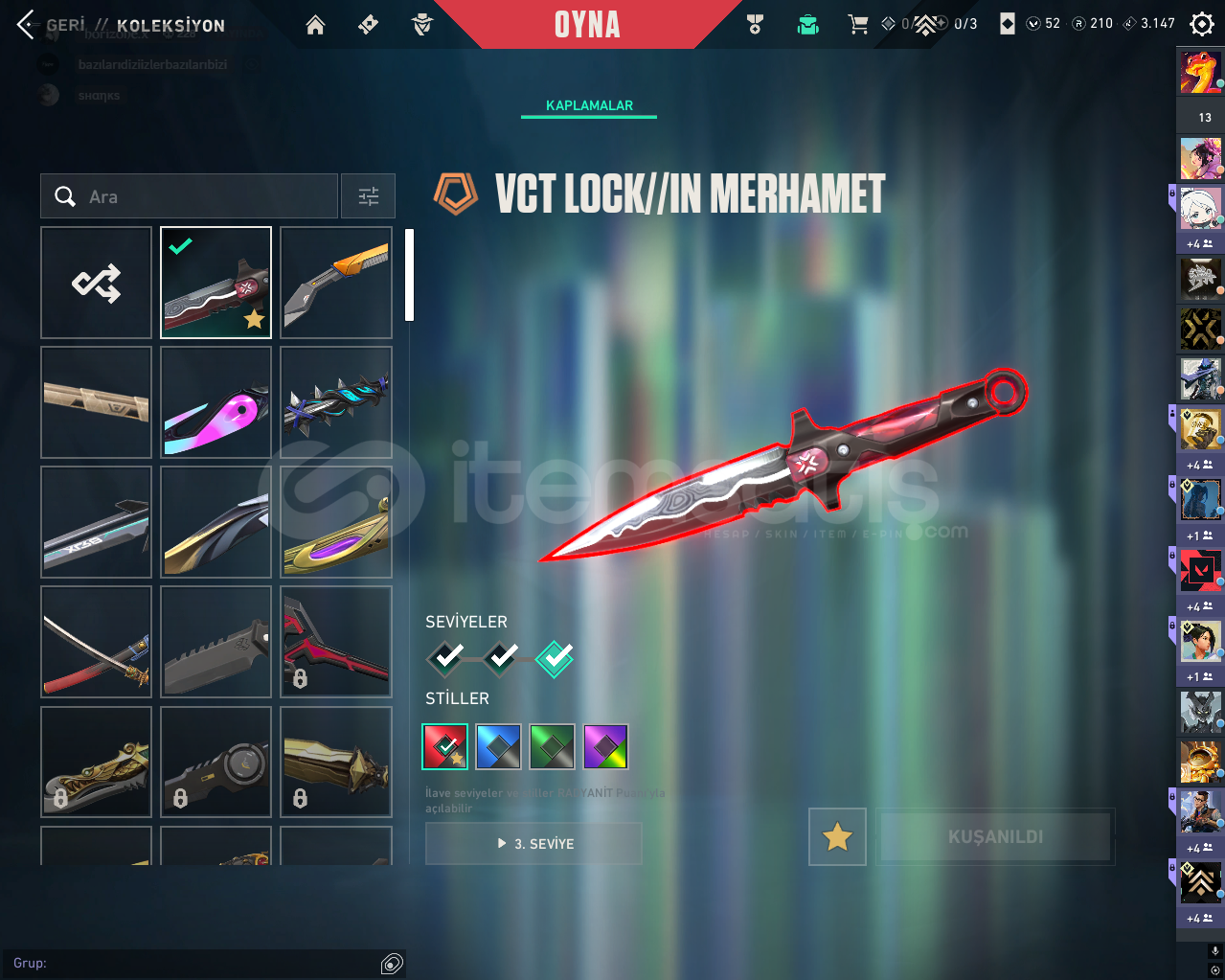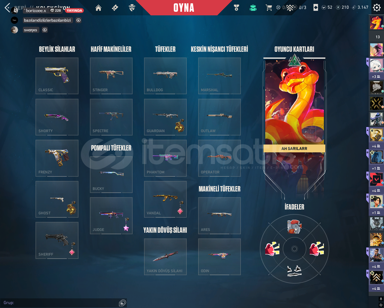 ASİL CLASİCONİ FRENZY FATİH GHOST YAĞMACI SHERİFNEPTÜN SPECTRE ONİ BULLDOGYAĞMACI GUARDİANBLASTX PHANTOMHELEZON PHANTOM NEPTÜN PHANTOM FAZ KORUCU VANDALAEMONDIR VANDALANOMALİ VANDAL ARCANE VANDAL ASİL VANDALKAOS VANDAL KÖKEN VANDALKRONOMİ VANDALONİ VANDAL YAĞMACI VANDAL EJDER OPERATÖRONİ ARESVTC LOCK İN MERHAMET BIÇAĞI ONİ KATANA