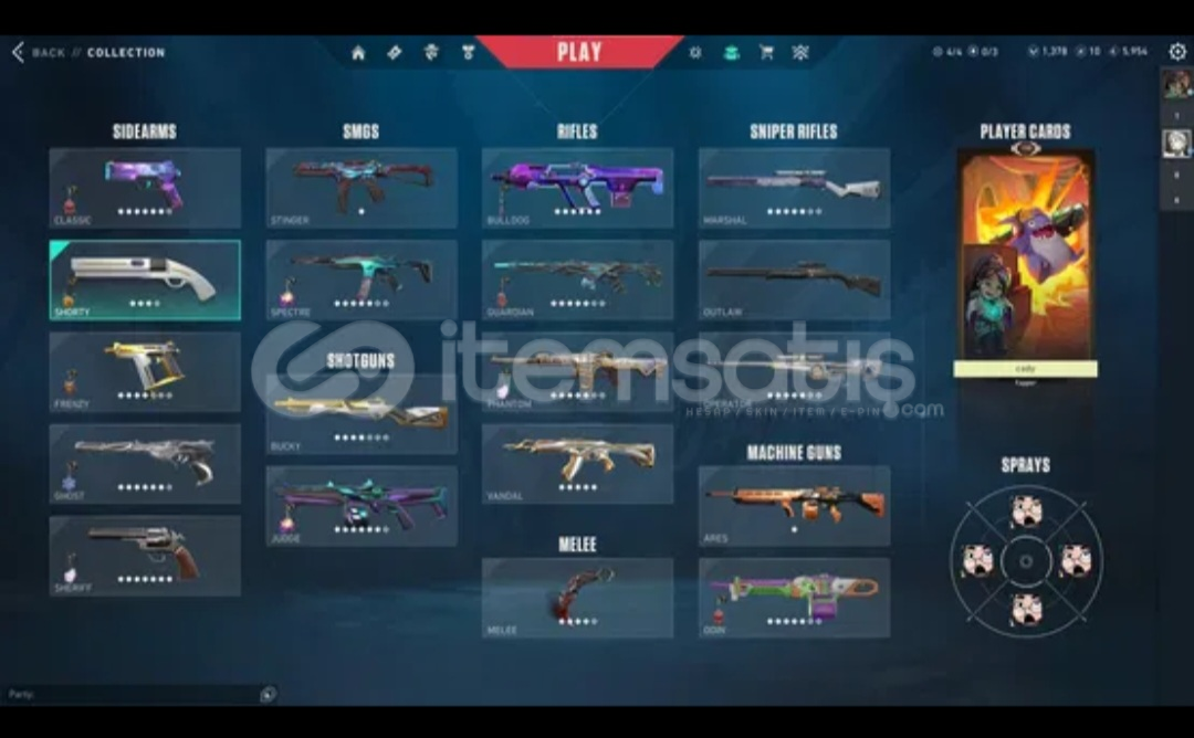 Vandal: cesur yurek yitik anomali oni champions 2023 phantom: yagmaci oni sihirpunk iyon guardian:gaia bulldog:res sherif: seri tetik ve iyon ghost:fatih classic: spectrum shorty: neptun frenzy:asil bucky:asil judge:zamanin otesi marshall: seri tetik operator: koken ve uranyum notrallestirici odin:blastx spectre:asilBicakta ise vct lockin yagmaci karambit rgx katana ve bp vardir