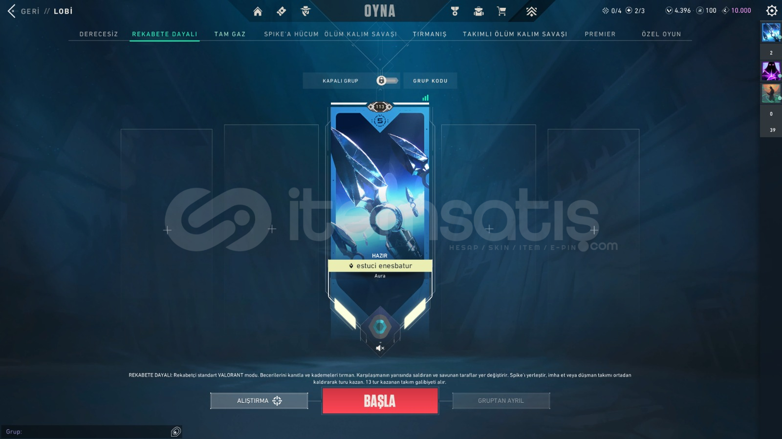 Merhaba, kendi kullandığım ve özenle baktığım Valorant hesabımı satıyorum. Hesap güvenilir, tertemiz ve sadece bana ait.🪄 Skinler:Ghost: Fatih GhostŞerif: Seri Tetik ŞerifOperator: Yağmacı OperatorVandal: Kuronami Vandal, Ulupençe Vandal, Yitik Vandal, Felaketin Kalbi Vandal, Yıldız Belası VandalBıçaklar: Özel Haraket Kelebek, Semavi Yelpaze, Exo Katana, VCT Lock In Merhamet&...