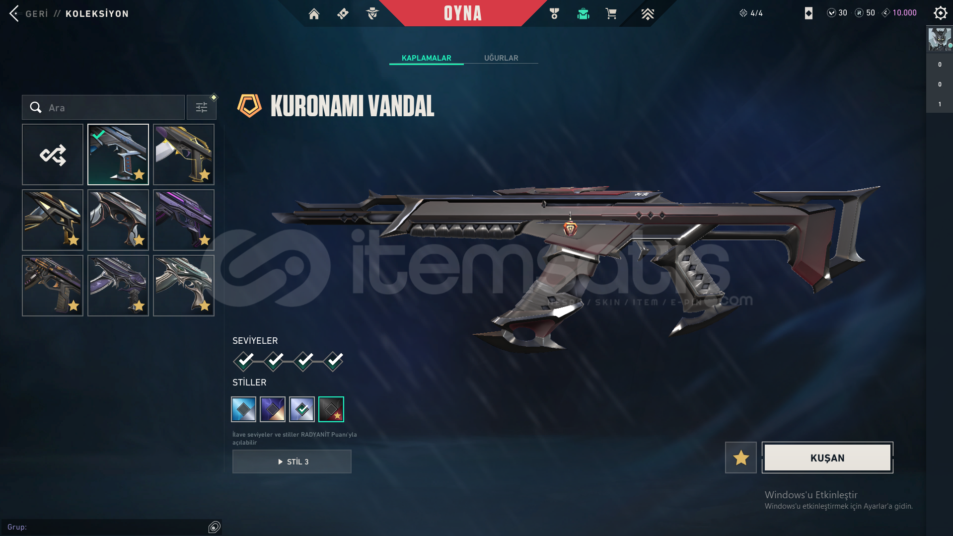 8 TANE VANDAL : KURONAMI VANDAL - ASİL VANDAL - CHAMPIONS 2025 VANDAL - EVRİM VANDAL - EX.0 VANDAL - KAOSUN BAŞLANGICI VANDAL - YAĞMACI VANDAL - YİTİK VANDAL2 TANE PANTOM: PONÇİK ECEL PHANTOM - DELİPOP PHANTOM İYON OPERATOR KURONAMI MARSHALFATİH GUARDIANSIRÇİÇEĞİ JUDGEVALORANT GO! 1. CİLT SPECTREYAĞMACI SHERIFFYİTİK CLASSIC4 TANE BIÇAK: CHAMPIONS 2025 KELEBEK - ŞİMŞEK B...