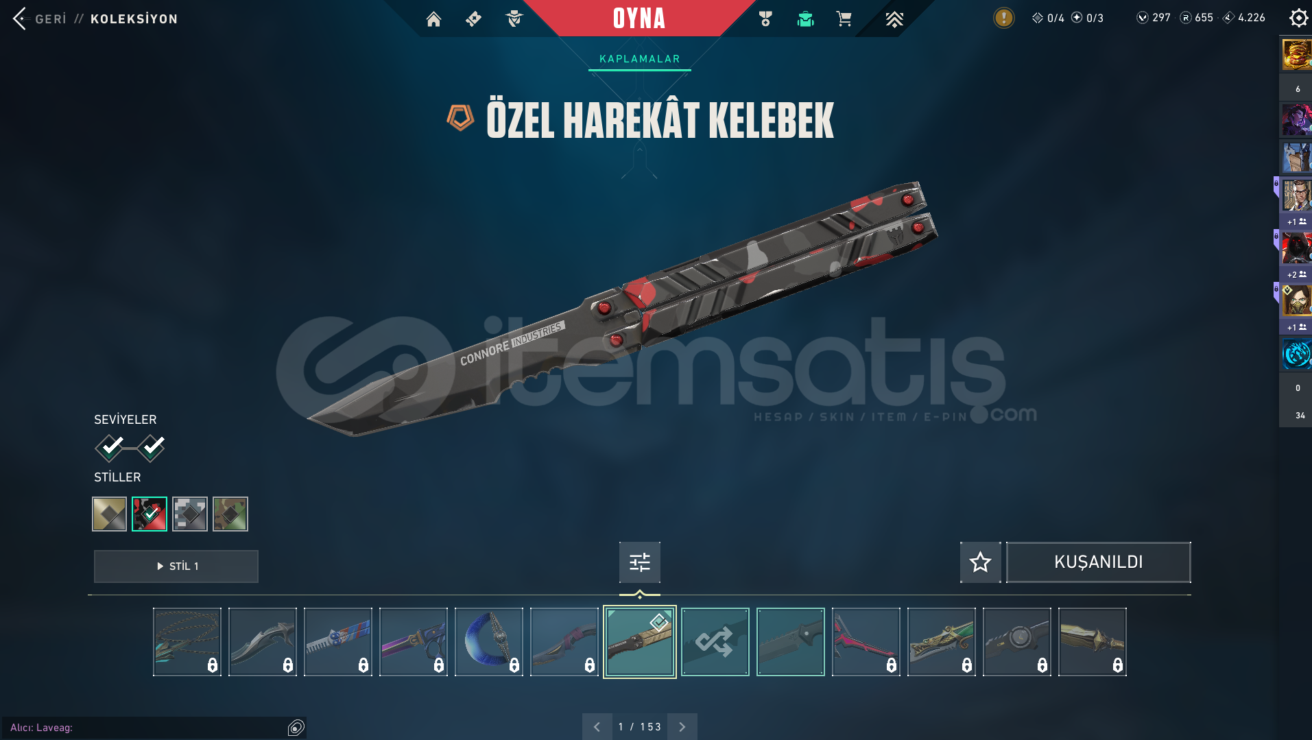 • Hesap Yukarıdakiler Gibidir E posta değişimi falan olucak sadece önemli olan skinlleri yazdım güvenilir hesabım bilgilerim yazılıdır Ciddi Alıcılar için küçük pazarlık olur