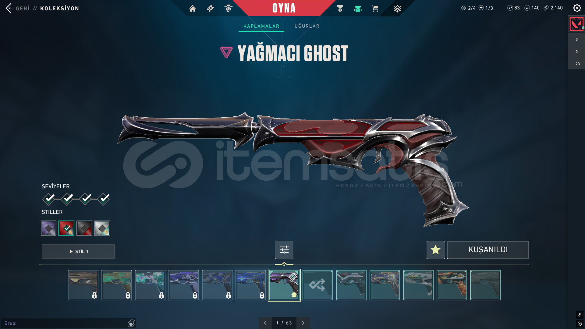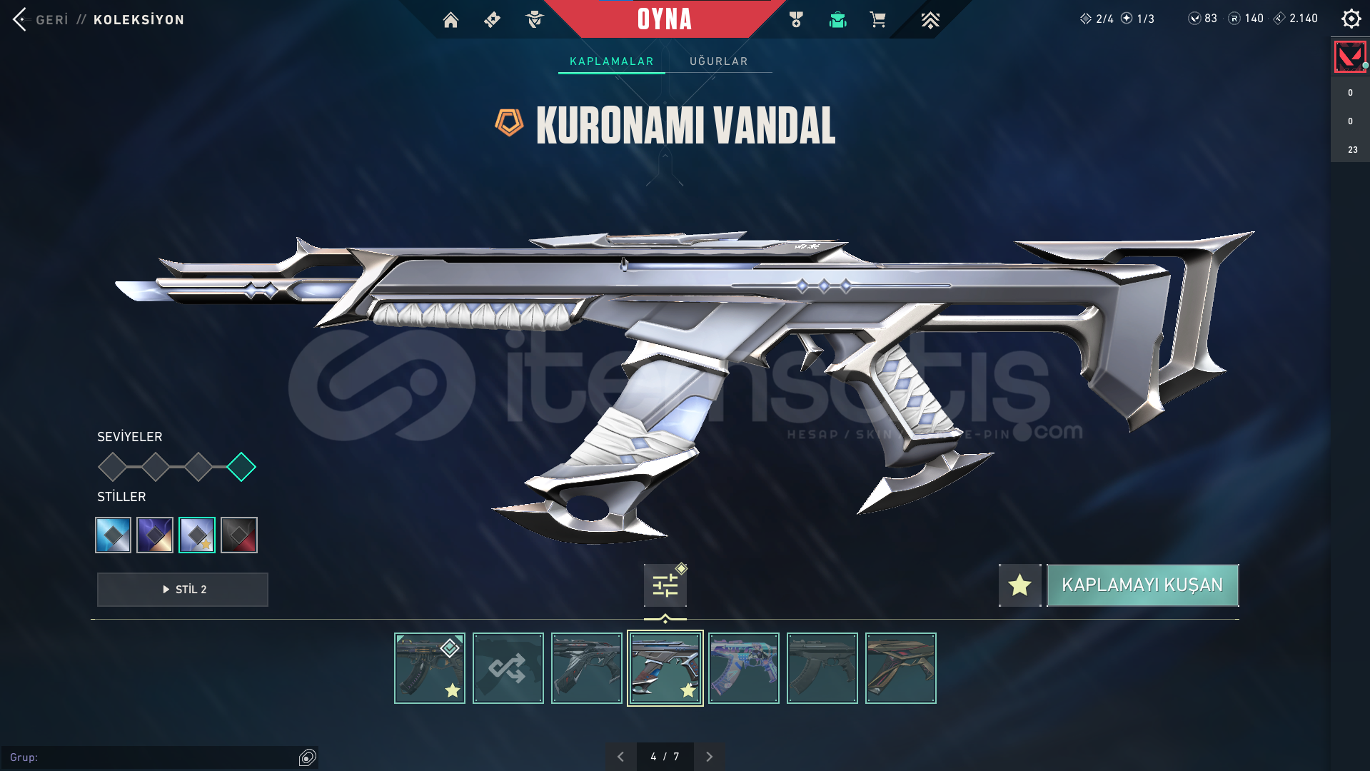Hesaptaki skinler:Kaos VandalKuronomi VandalUlu Pence VandalRGX Kelebek BıcakUzan Avcısı BıcakYağmacı Karambit BıçakGAİA PhantomAsil ClassicYağmacı SpectreGeri Kalanlar BaatlePass'dir Mail Degiştirilip Verilecektir Alıcısına Hayırlı Olsun Güzel Skinler Olan Hesap
