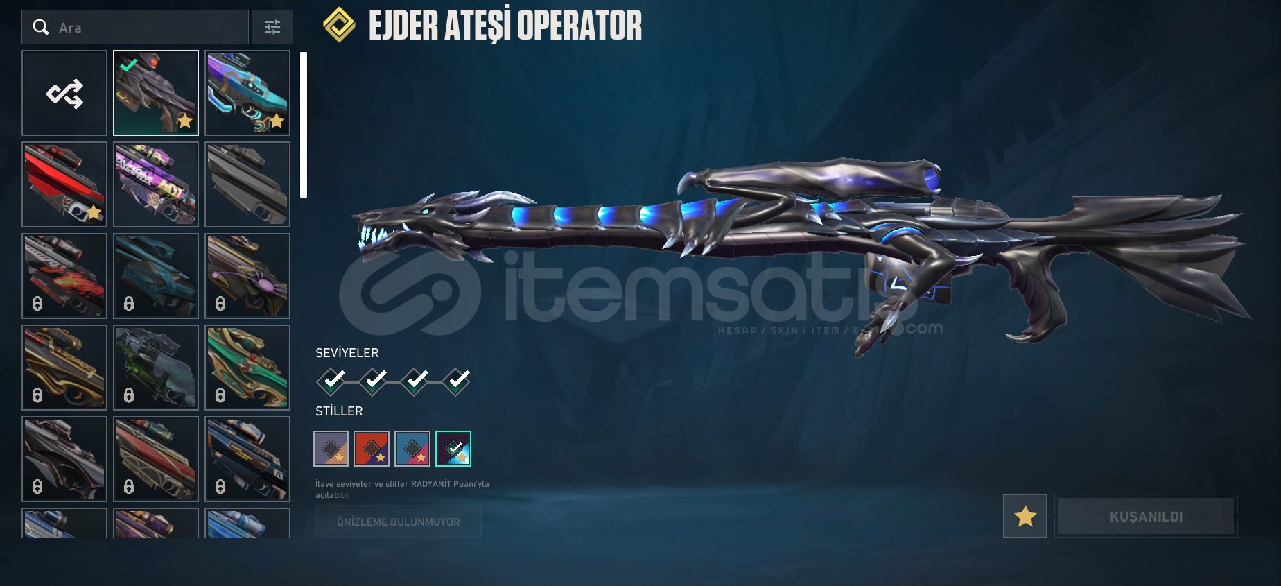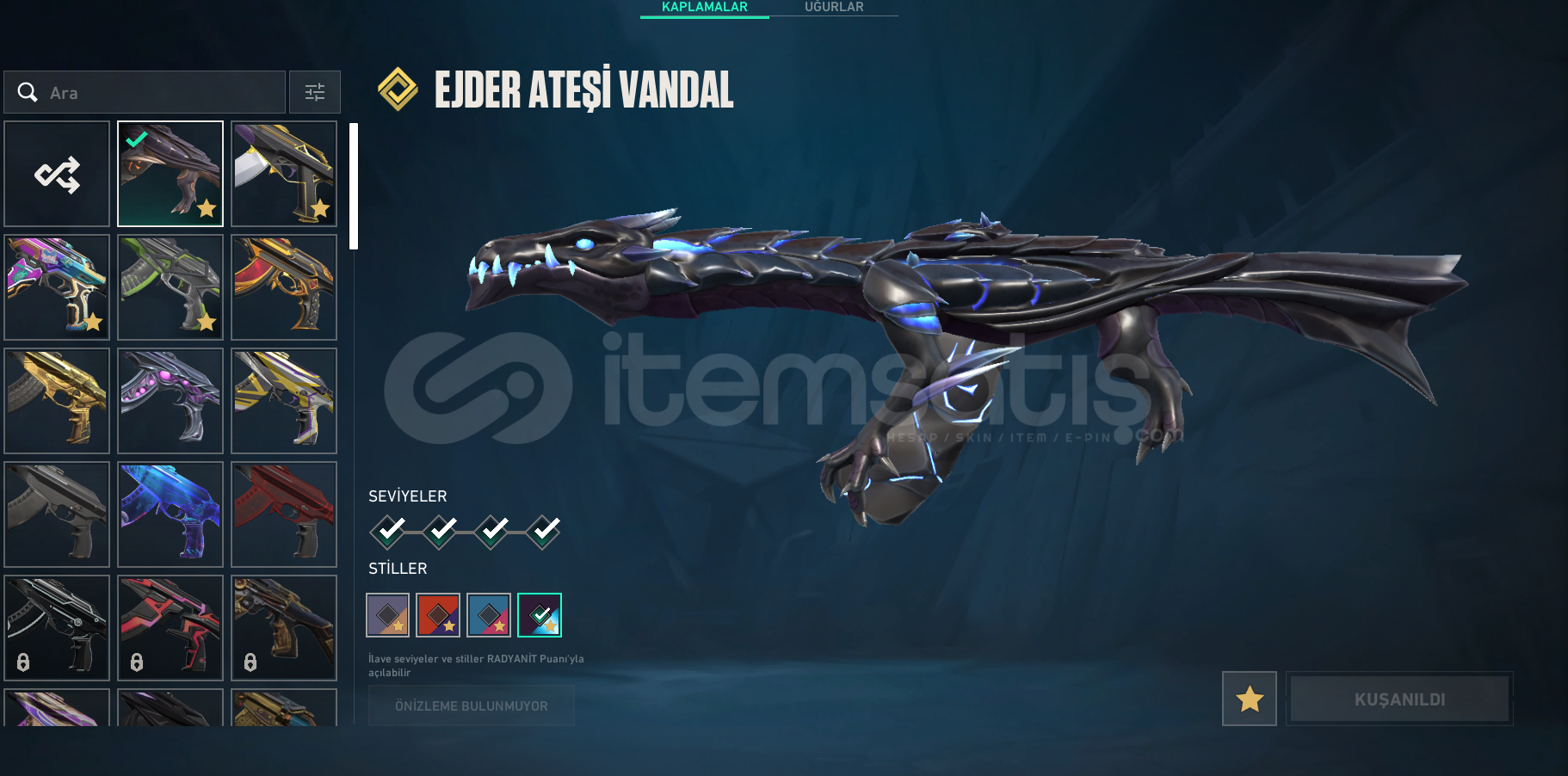 Ejder Ateşi VandalAEFT PhantomYağmacı Karambit ( Asil SpectreEjder Ateşi OperatorDiğer fotoğrafları ekledım tum sılahlar full dur acıll nakıt dolayı satıyorum.Hesabın ılk sahıbıyım
