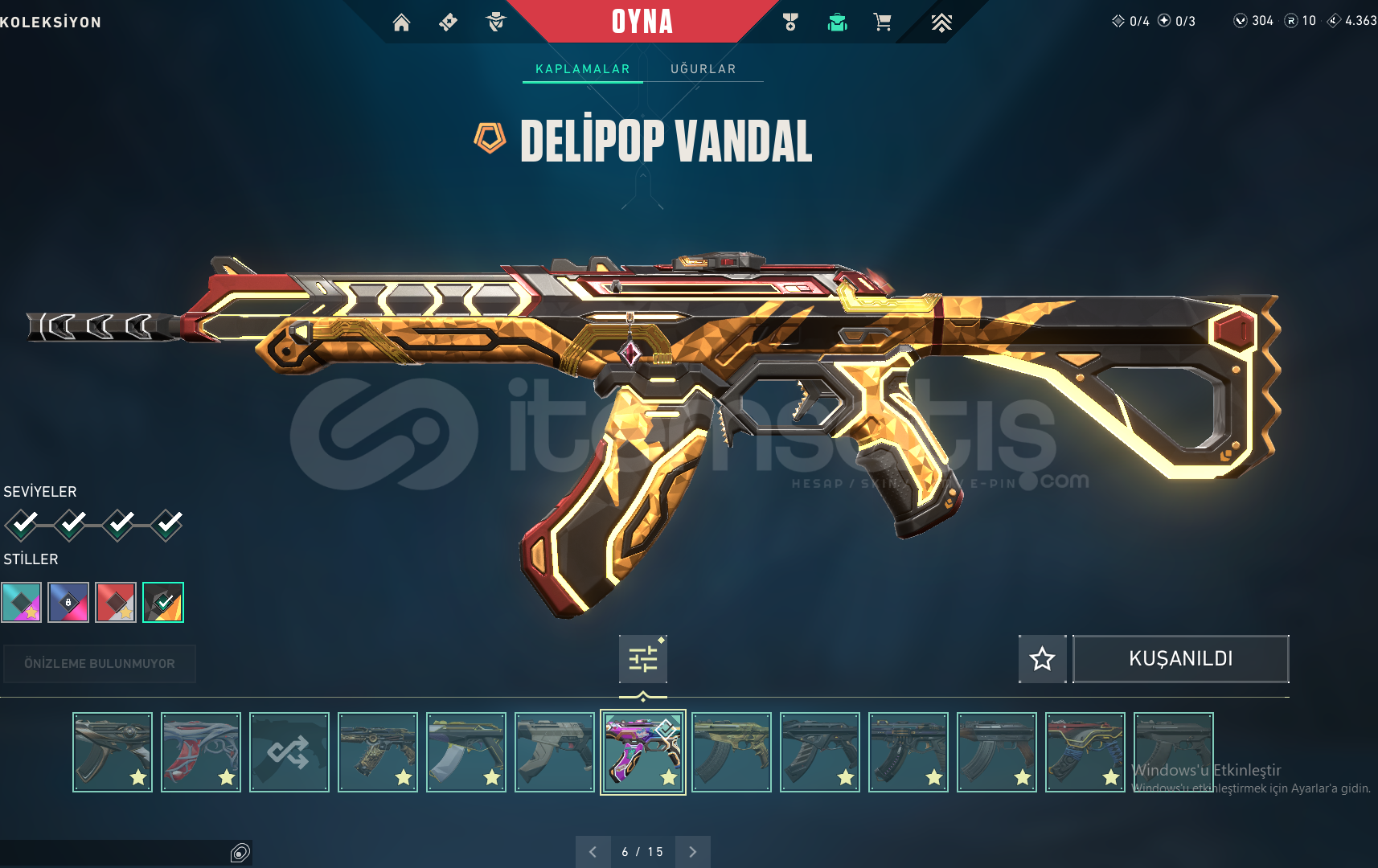 WANDAL - Kaos - Yağmacı - Faz - Arcane - Anomali - Felaketin Kalbi - Ebedi - Kuronami - RGX -PHONTOM - Seri Tetik - Anomali - Asil - Champıons - SpectrumGHOST - Anomali - Yağmacı - Ulu PençeSHERIFF - Seri Tetik - AnomaliBIÇAKLAR- VTC Karambit - Anomali - Arcane Eldivenleri - Obsidyen - Onımaru Kunıtsına - RGX KelebekErişim ve E-Posta BilgileriSatın alma işlemi tamamlandıktan sonra tarafınıza kullanıcı a...