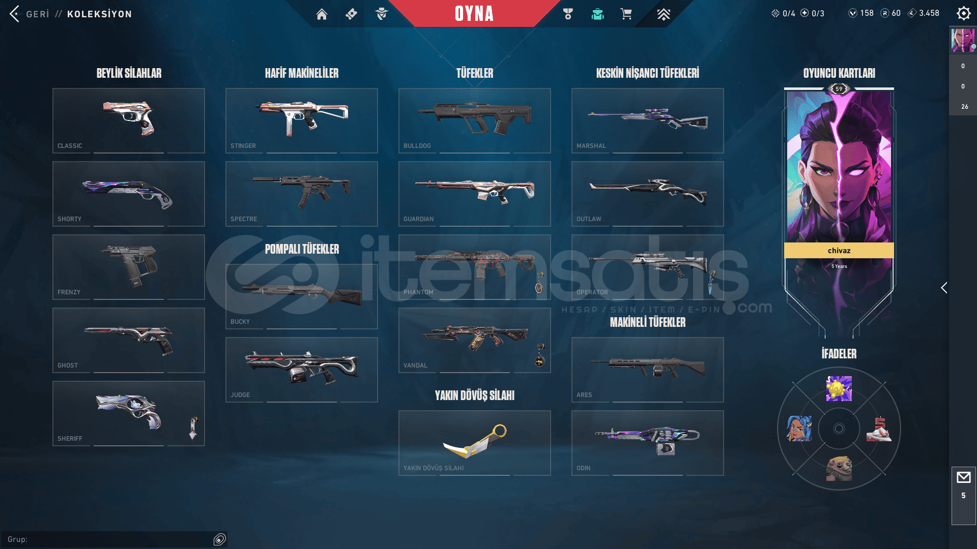 KOD : WP07Detailssır çiçeği sherifözel haraket phantomaeomendir vandalasil 2.0 karambityağmacı operator10.950VP Value - 159VP EnvanterLevel : 59Rank : Bronze 11 BattlepasslerTüm Hesaplar Garantilidir Problem Oluşumunda Değişim Yapılmaktadır.