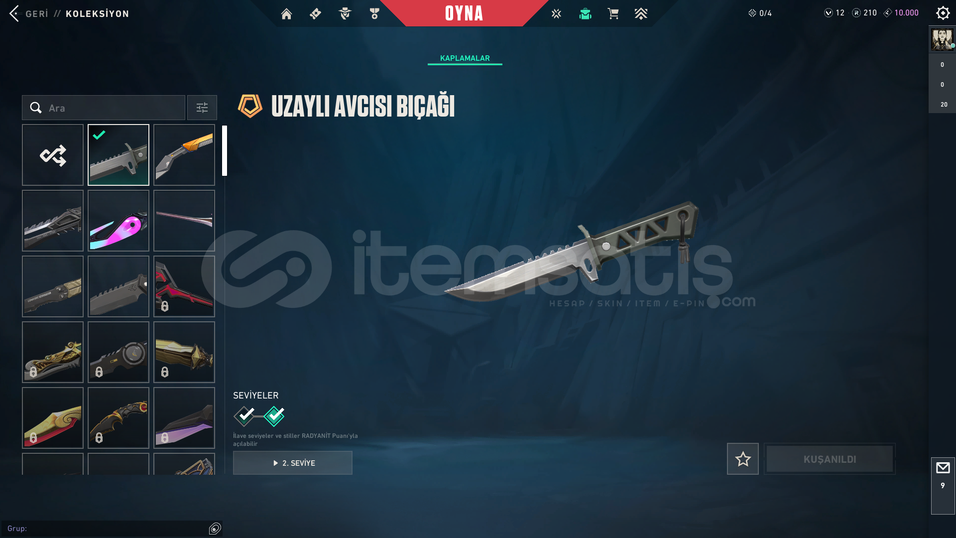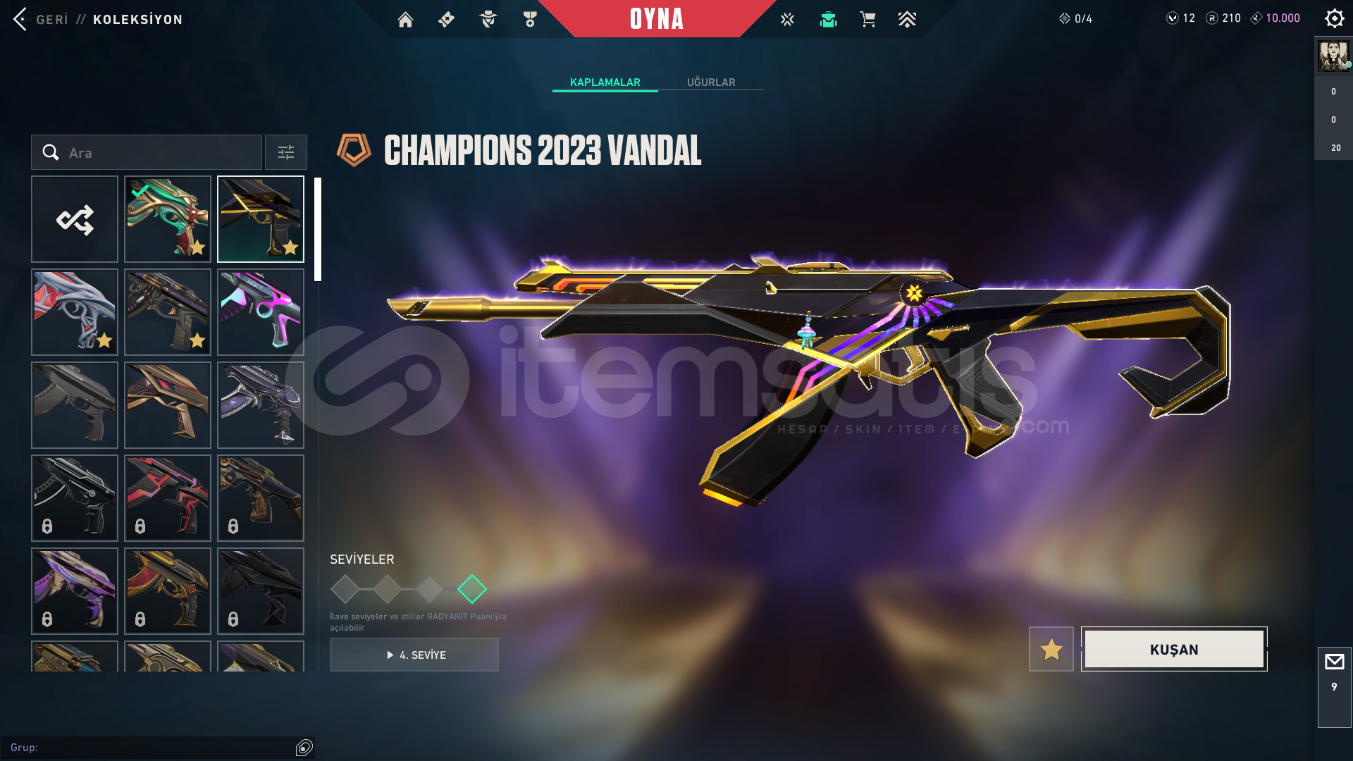 KOD : WP41DetailsRadiant krizi Classic Fatih ghostİyon şerif Kaos stringerRgx spcrte Fatih judge Asil guardianAsil phantom Champions 2023 vandal Ulu pençe vandal Gaia vandal Ejderin buyruğu vandal Kaos vandal Yağmacı vandal Ejder operatör Oni aresYağmacı odin Protokol bıçak Uzaylı avcısı bıçak Özel harekat kelebek45.425 VP Value - 1...
