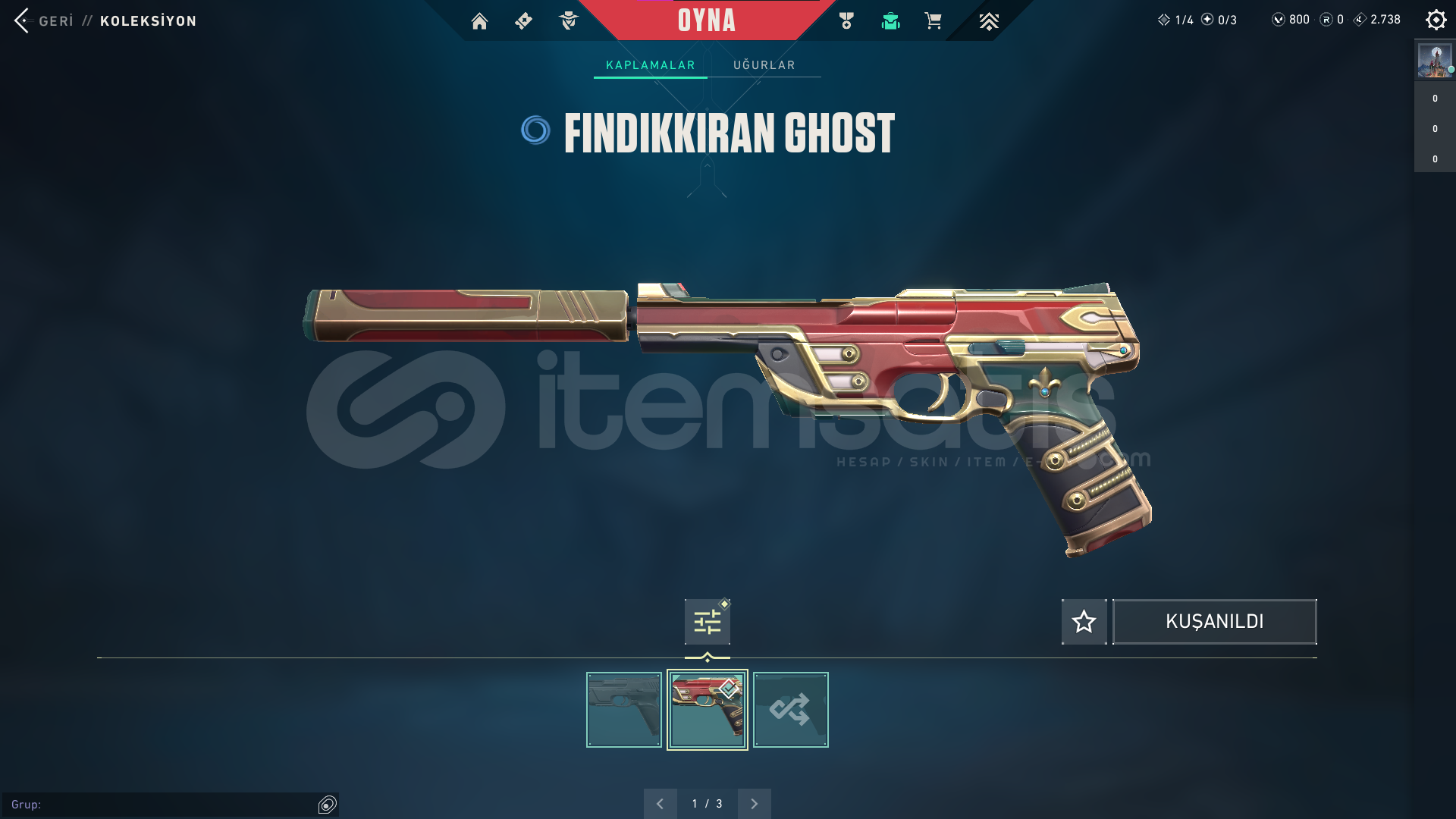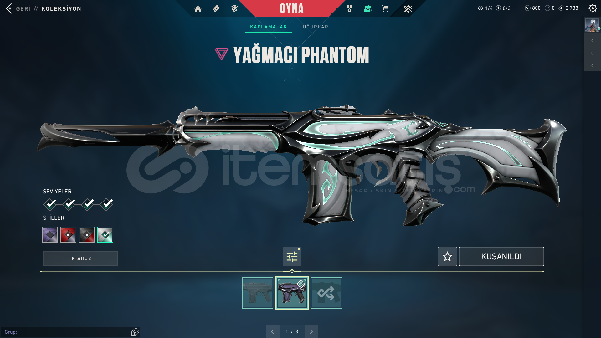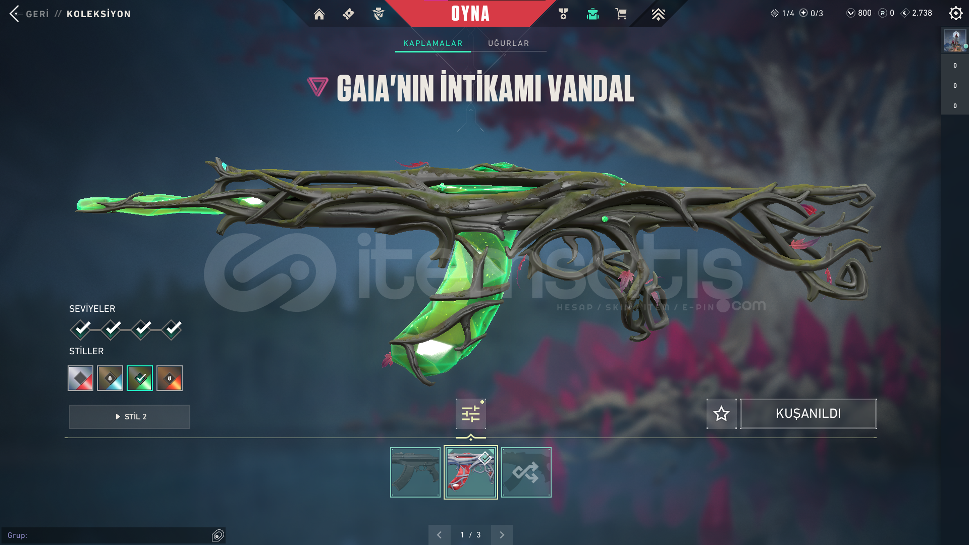 ⭐ Hesapta Yağmacı Phantom , Gaia'nın İntikamı Vandal ve Yadigar Taşı Hançerleri gibi toplamda 9 skin bulunmaktadır.