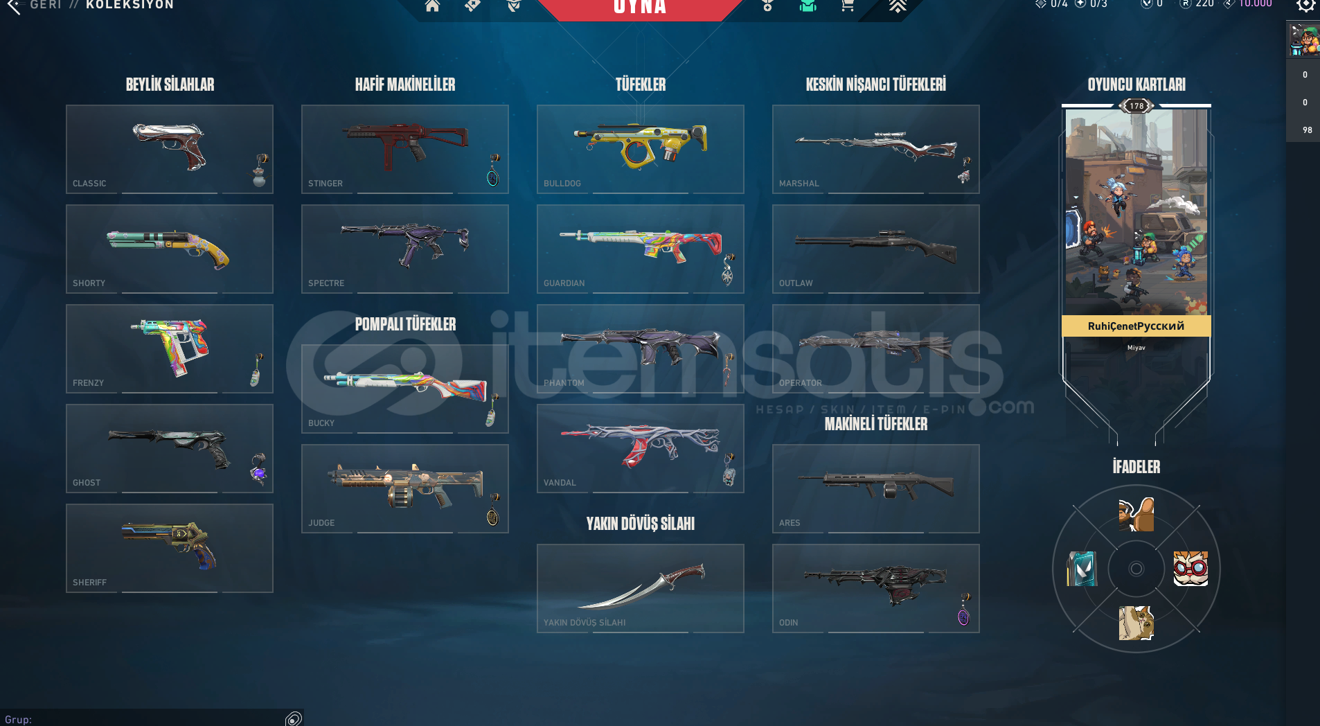 Hesapta Yağmacı 2. set Şakıyançelik Battepass Ebruli,hızlı ve ölümcül Battlepass Semavi judgeVandal: asil gaia ejder phantom:yağmacı 2 protokol spectre: yağmacı özel harekatoperator:ejderodin:yağmacıghost:yağmacı diğer tabancalarda da bp ve ajan skinleri varBıçaklar:şakıyançelik hızlı ve ölümcül karambit yağmacı bıçak ya...