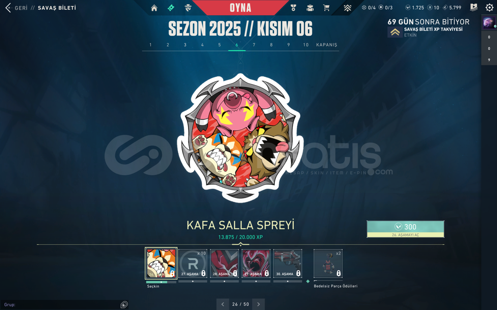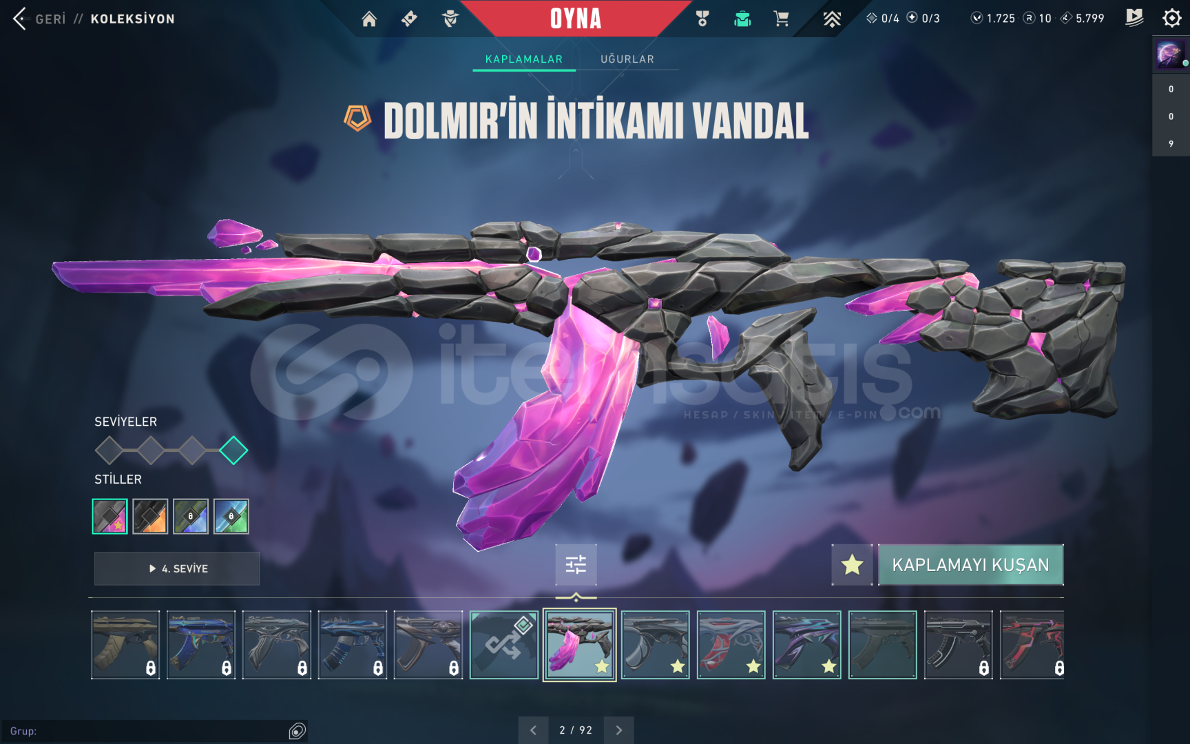 hesapta yağmacı hançer dolmir vandal gaia vandal evrim vandal ve 1725 vp + battle pass bulunmaktadır.