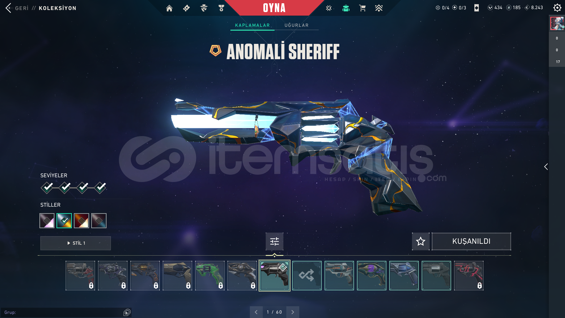 SKİNLER:YAĞMACI BIÇAK. ASİL VANDAL. GAIA VANDAL. AEMONDIR VANDAL. ANOMALİ SHERRİF BULUNMAKTADIR YANINDA UFAK TEFEK SKİNLERDE VARDIR.