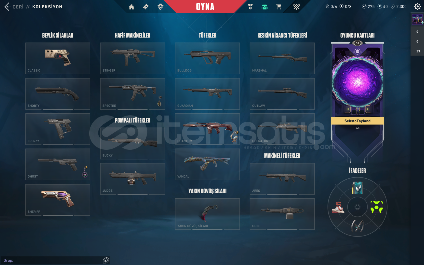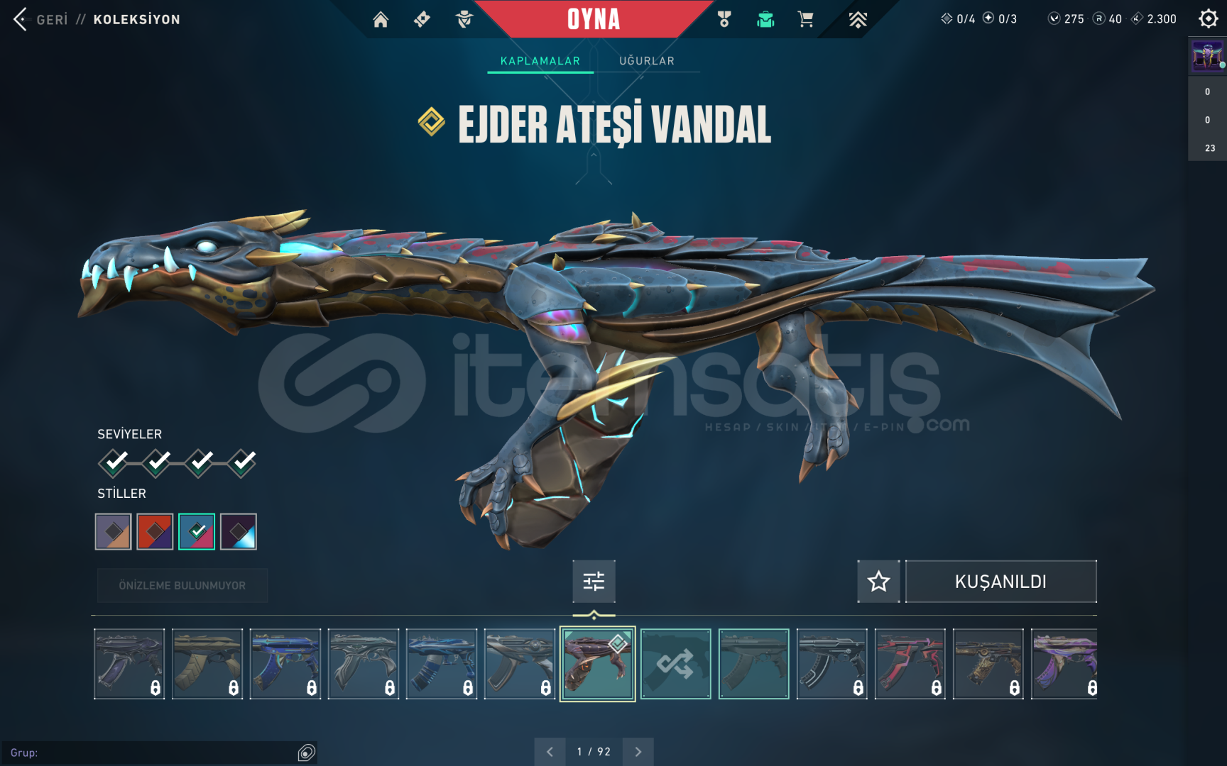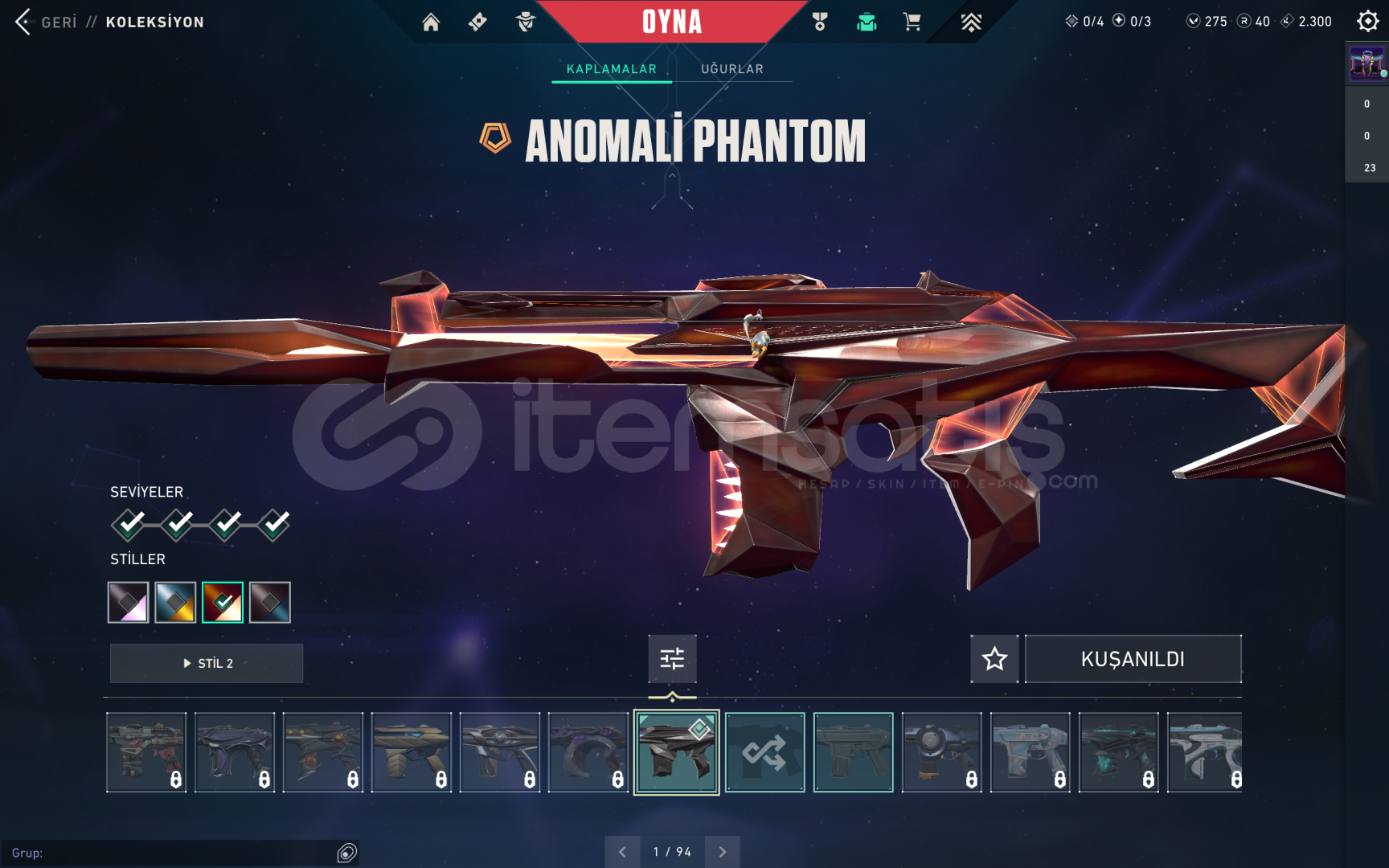 hesap yağmacı karambit ejder vandal anomali phantom skinlerini içermektedir