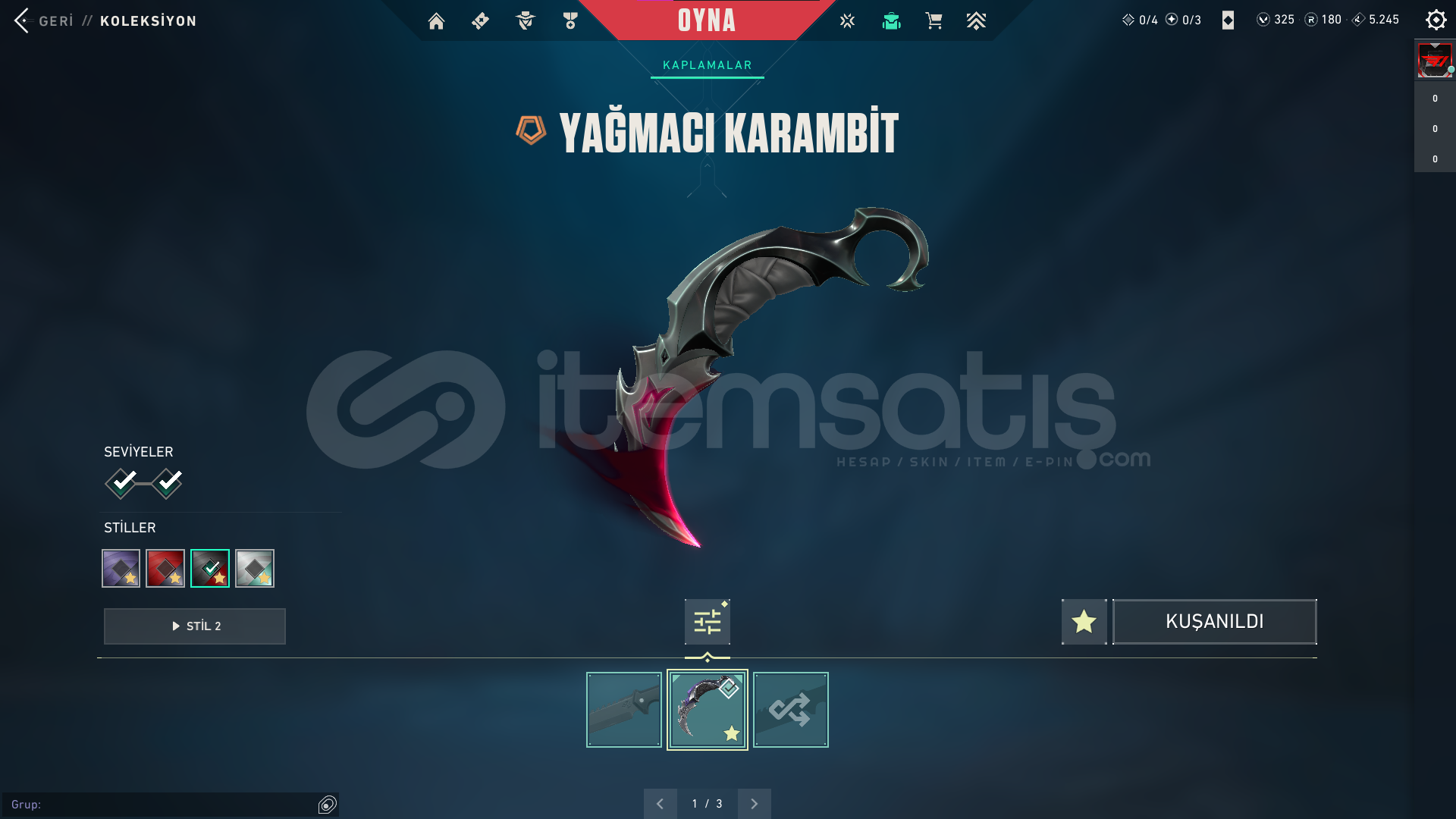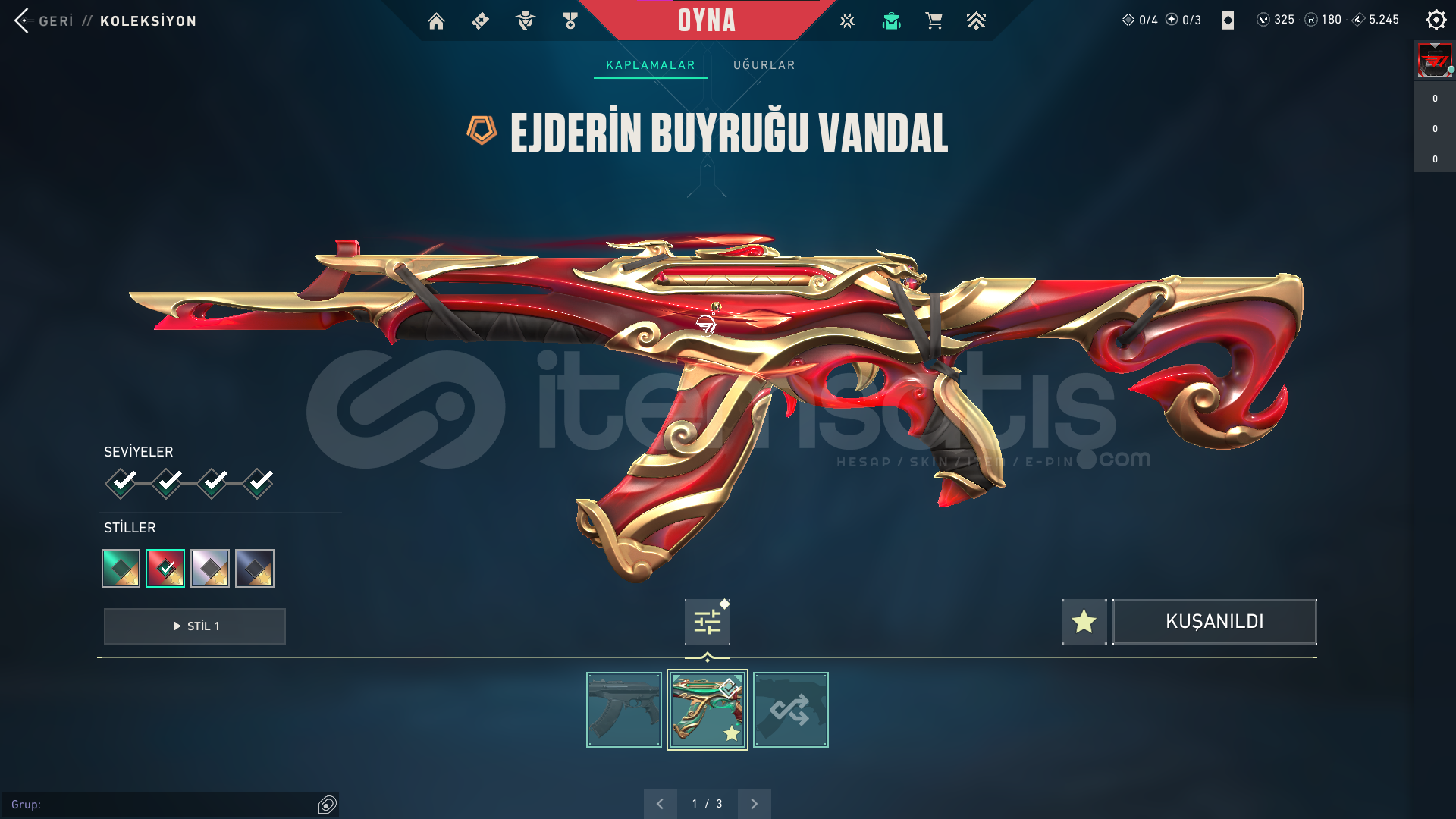 ⭐ Hesapta Yağmacı Karambit , Ederin Buyruğu Vandal ve VCT X T1 Classic  bulunmaktadır.