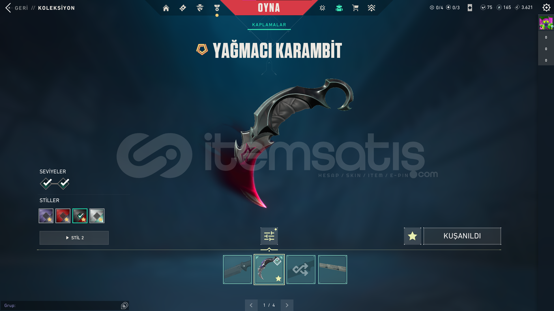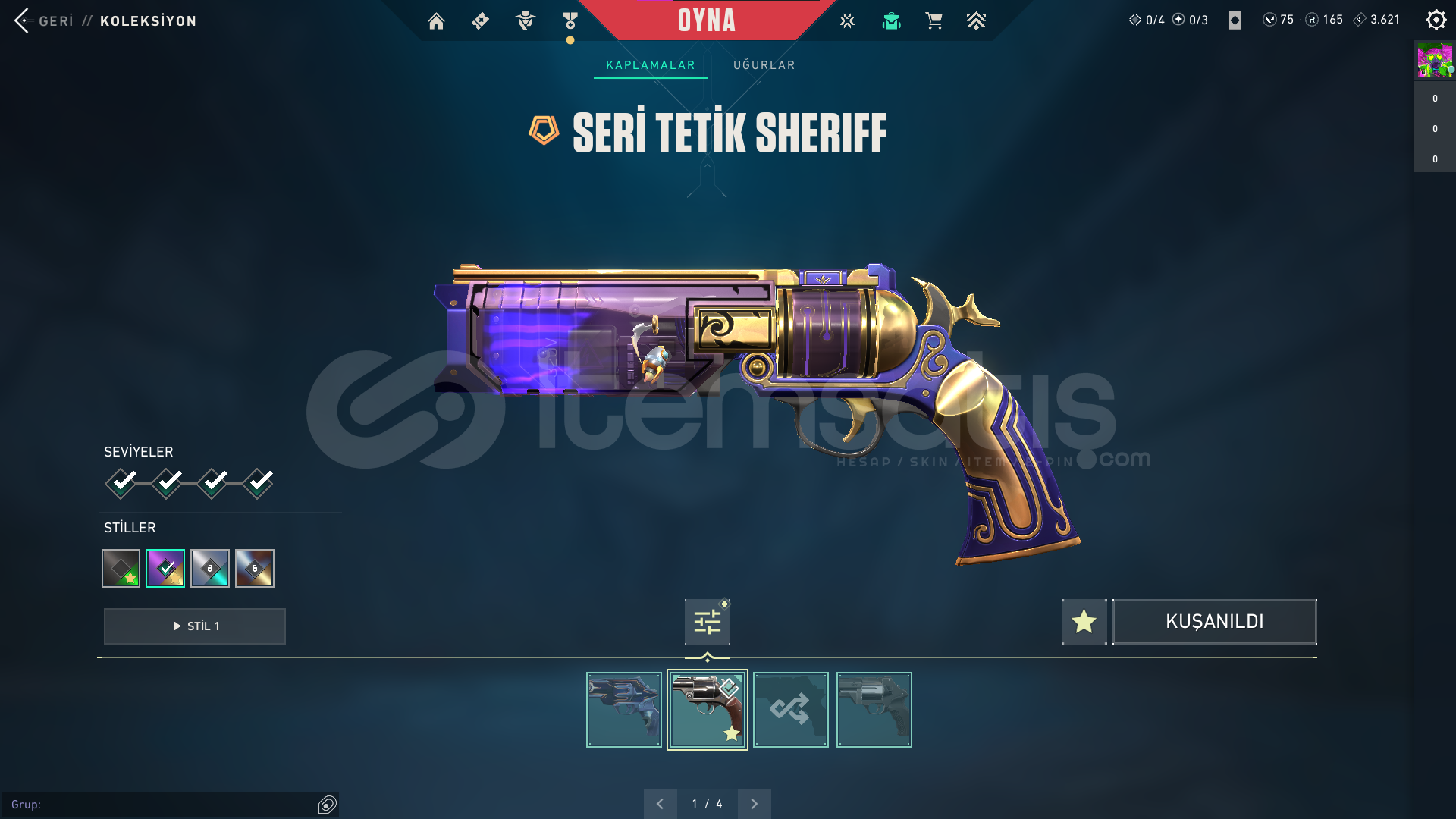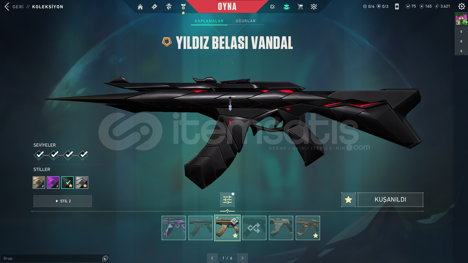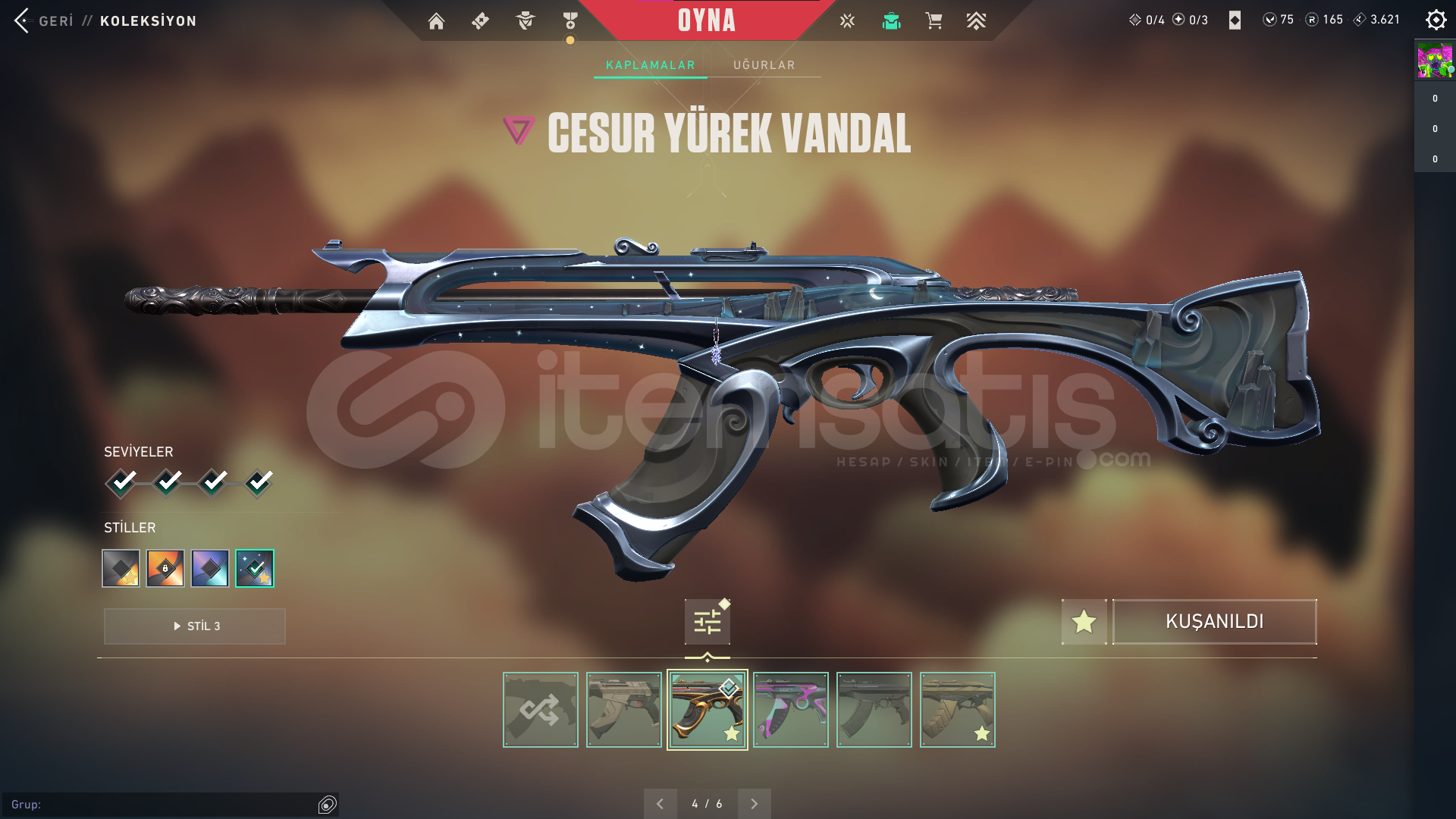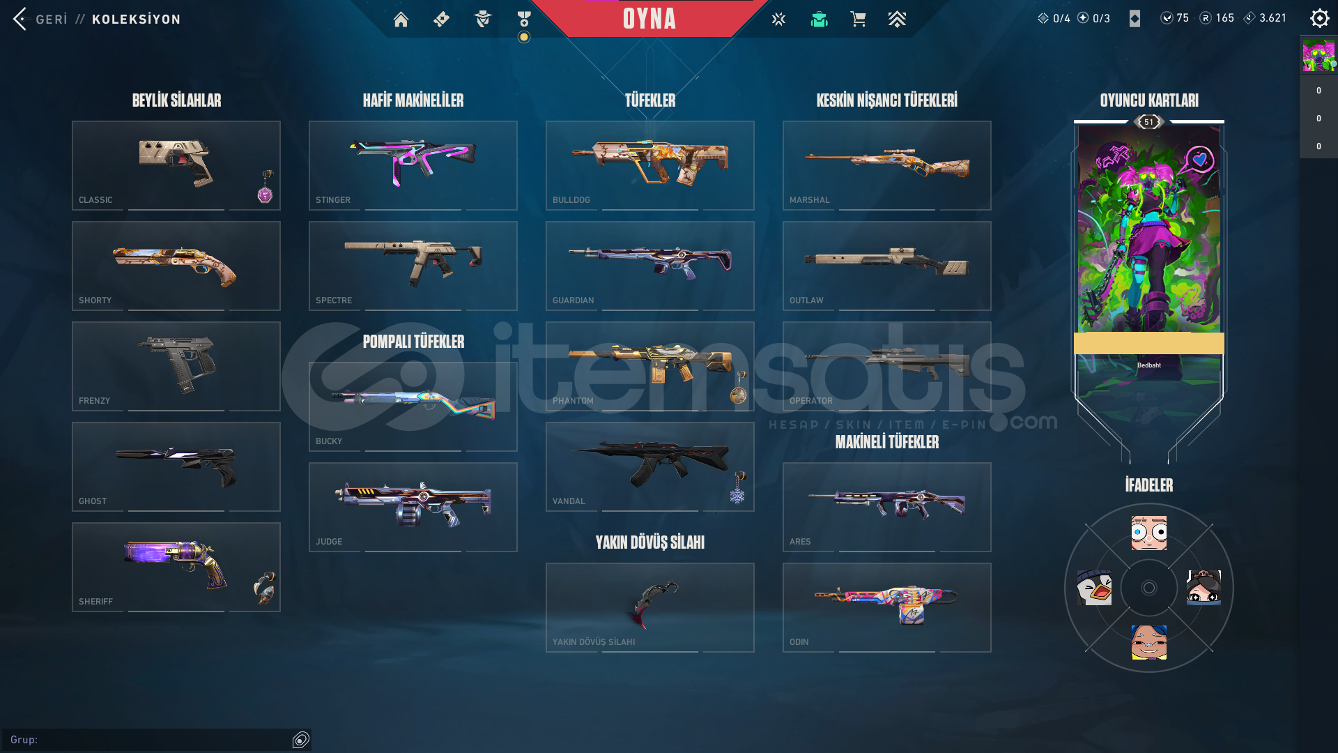 ⭐ Hesapta Yağmacı Karambit , Seri Tetik Sheriff , Anomali Ghost , Yıldız Belası Vandal , Cesur Yürek Vandal , Talihinin Eli Phantom , ATLAS // CMD Vandal , ATLAS // CMD Classic , Devinim Vandal , Sukunet Phantom , ATLAS // CMD CopATLAS // CMD Spectre ve ATLAS // CMD Outlaw gibi toplamda 27 skin bulunmaktadır.