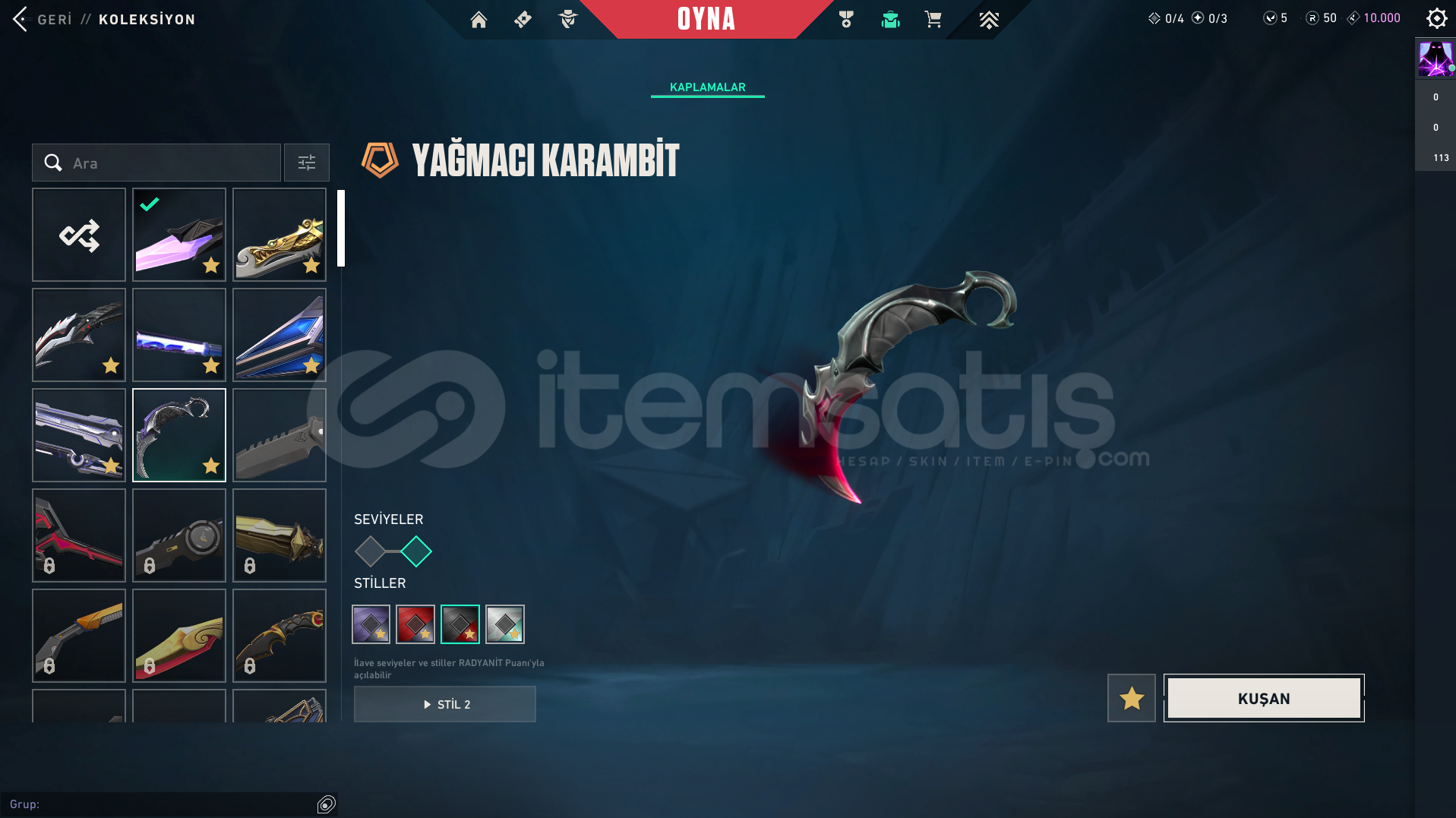 • Yağmacı Karambit (en değerli bıçaklardan biri)