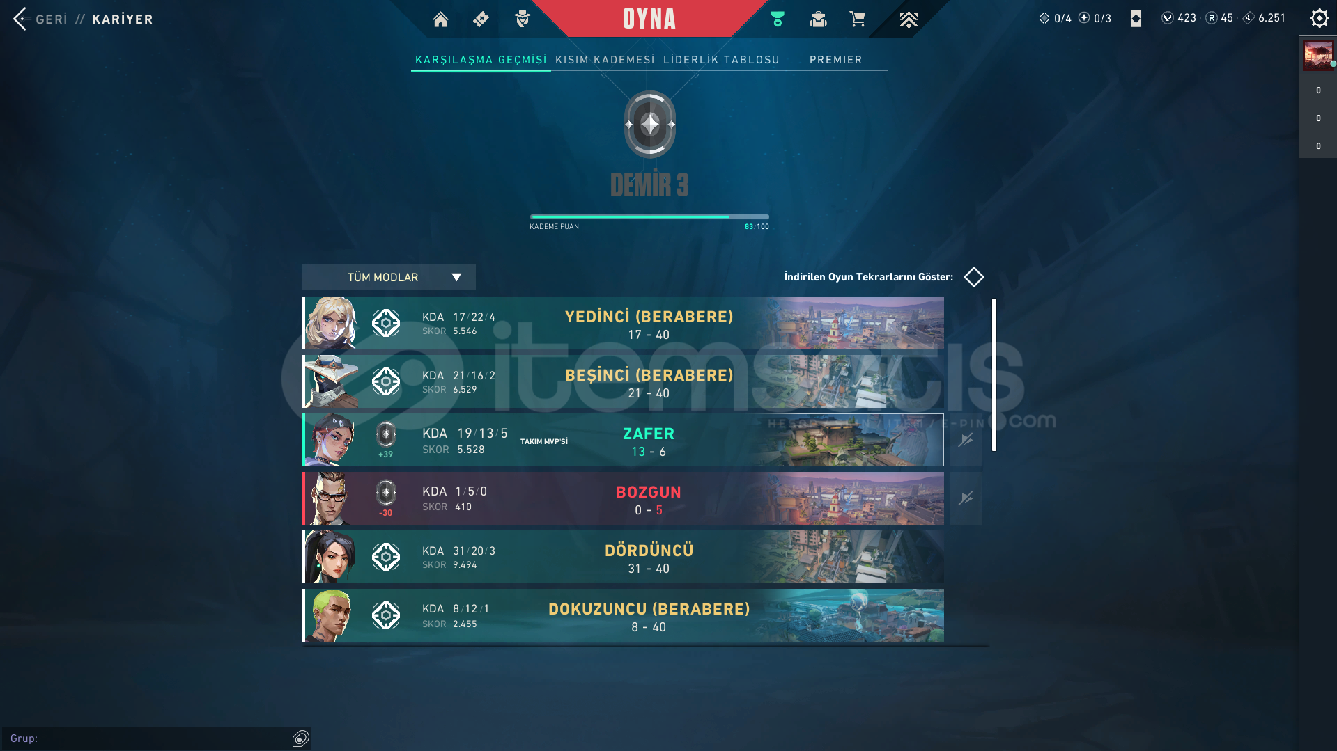 🔥 SATILIK VALORANT HESABI – DEMİR 3 / YAĞMACI VANDAL VE ASİL CLASSİC / TEMİZ HESAP 🔥