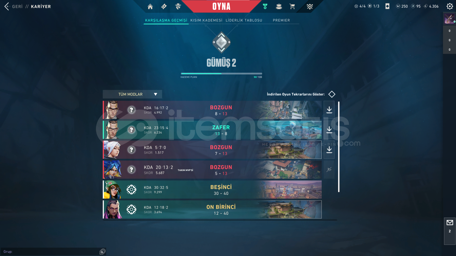Hesap Bilgileri ve Teslimat DetaylarıLevel: Hesap 32 leveldir.Dereceli Bilgisi: Gümüş 2 50 KPHesap Sahibi: Hesabı bizzat ben açtım. Satın alma vb. durum yoktur. İlk sahibi siz olacaksınız.Doğum Tarihi: Hesapla birlikte verilir. Örn: 01/01/2000Konum Bilgisi: Oluşturulduğu şehir ve günü de sizinle paylaşılır.Sunucu & Bölge: Türkiye TR sunucusunda açılmıştı...