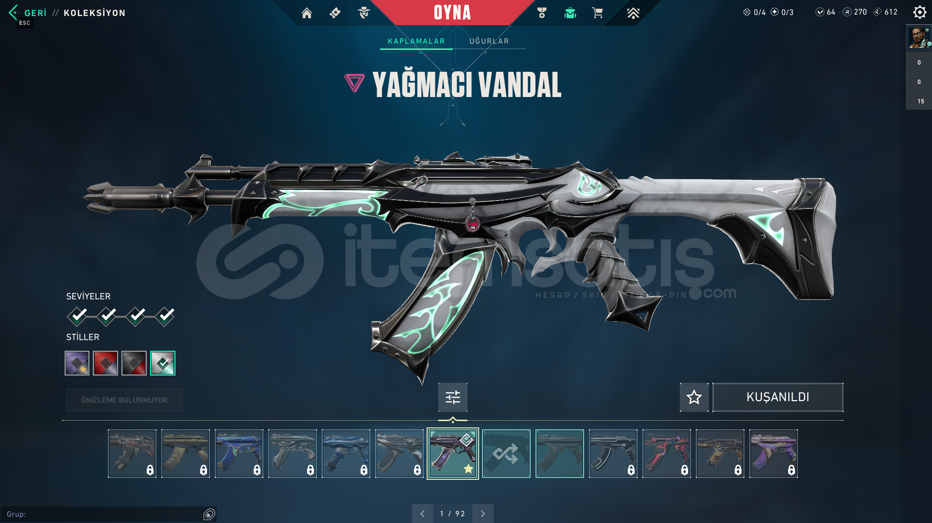 Valorant skinli E-Postalı hesaptırYAĞMACI VANDAL İYON PHANTOM BULUNAN HESAPTIR.Rank: DEMİR 3Sunucu: TRMağaza: TRMailli hesaptır bilgileri size devredilmektedir, mevcut bilgileri kendi bilgileriniz ile değiştirebilirsiniz.Ürünler fotoğraftakiler ile bire bir aynı hesaptır, farklı hesap değildir